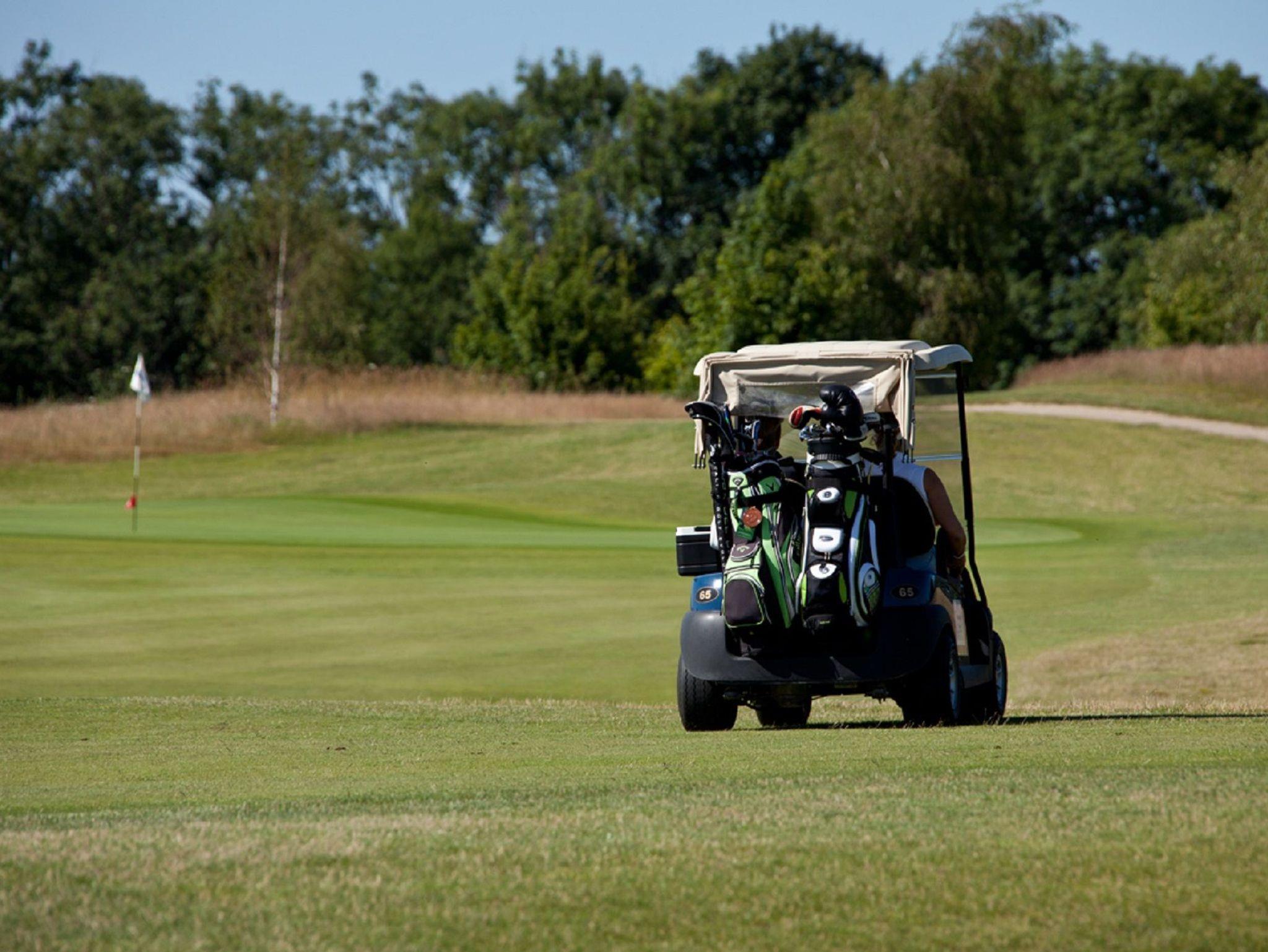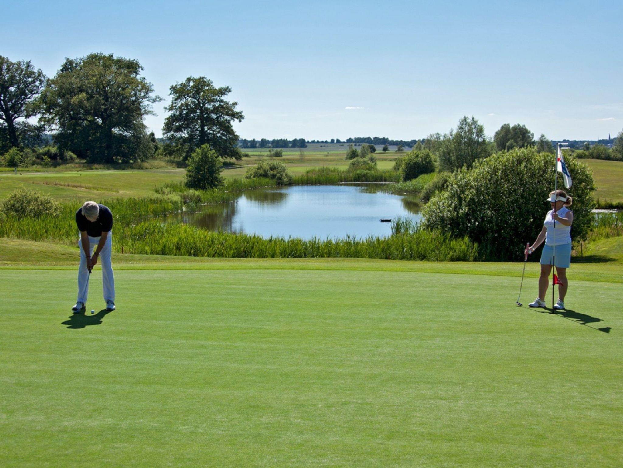 Von der nach südwesten ausgerichteten Terrasse können Sie über die Golfanlagen schauen.