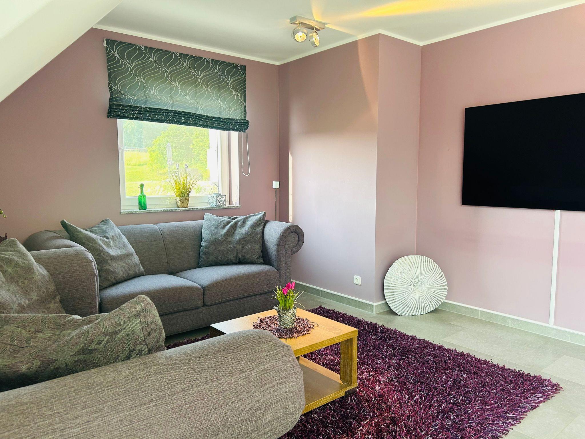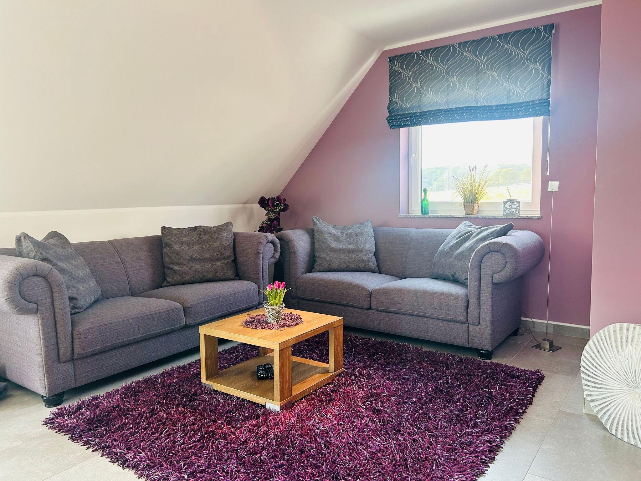 Die 100m² Wohnfläche der Obergeschoss-Wohnung im Maisonette Stil bieten ausreichend Platz für Ihre Familie. Die 2 Schlafzimmer sind gemütlich eingerichtet und versprechen erholsame Nächte. Die 2 Badezimmer, eines davon mit Sauna, bieten Entspannung und Komfort. Der offene Wohnbereich verbindet Wohn- und Esszimmer und schafft so eine gesellige Atmosphäre. Der Kamin sorgt für eine behagliche Wärme und eine gemütliche Stimmung.