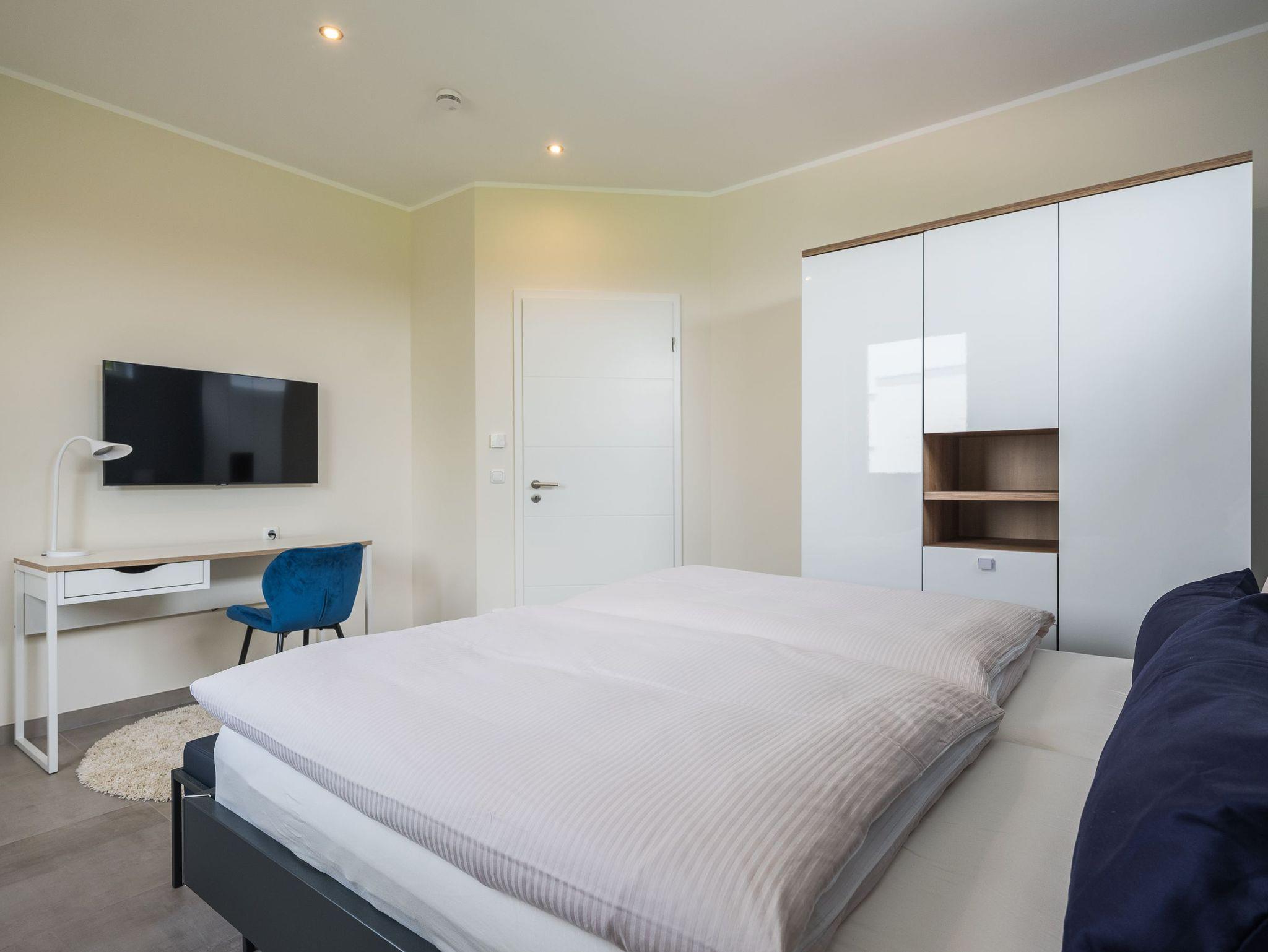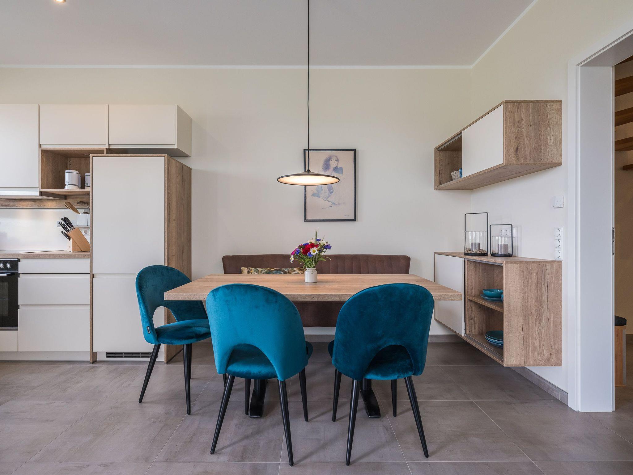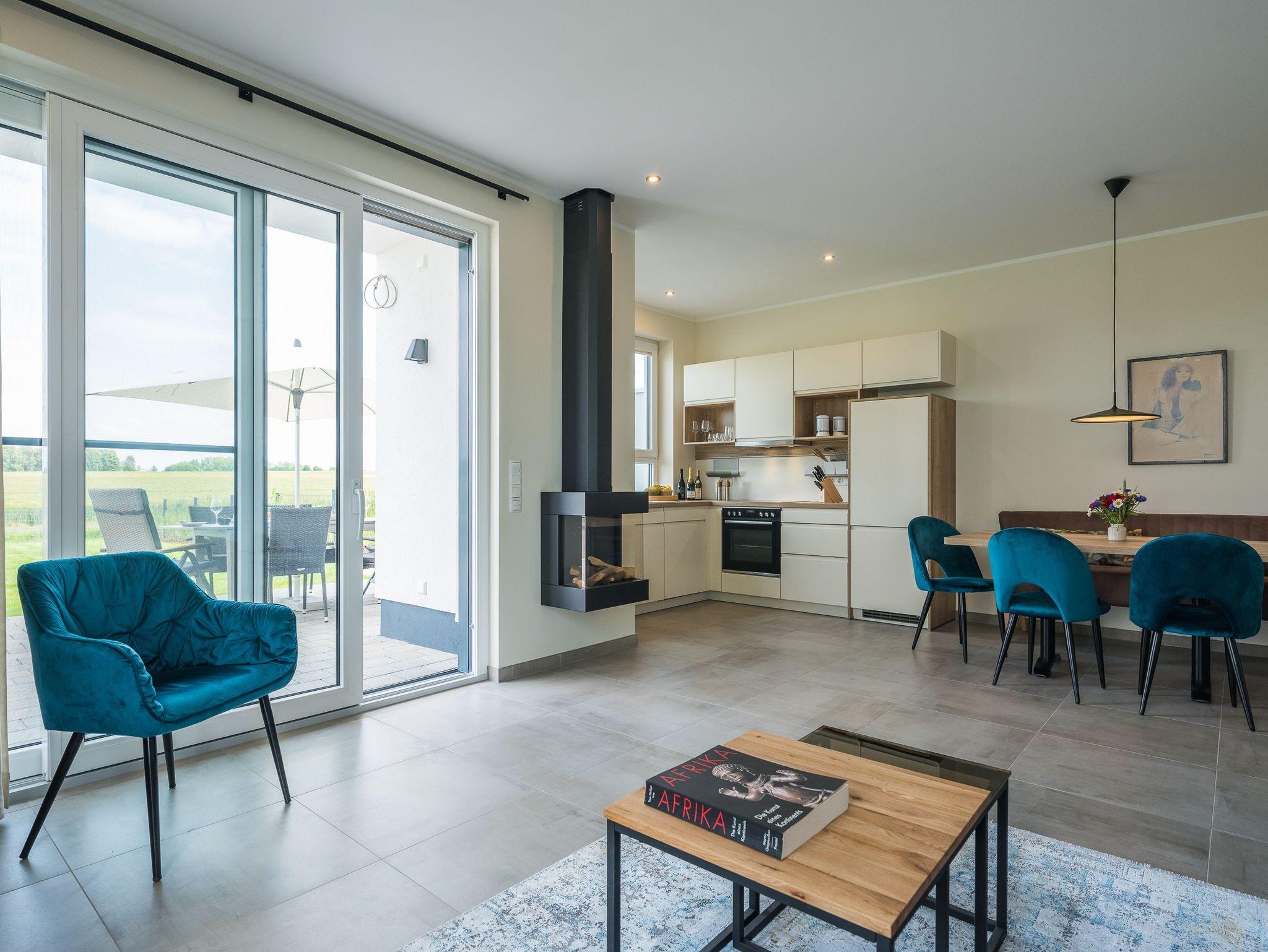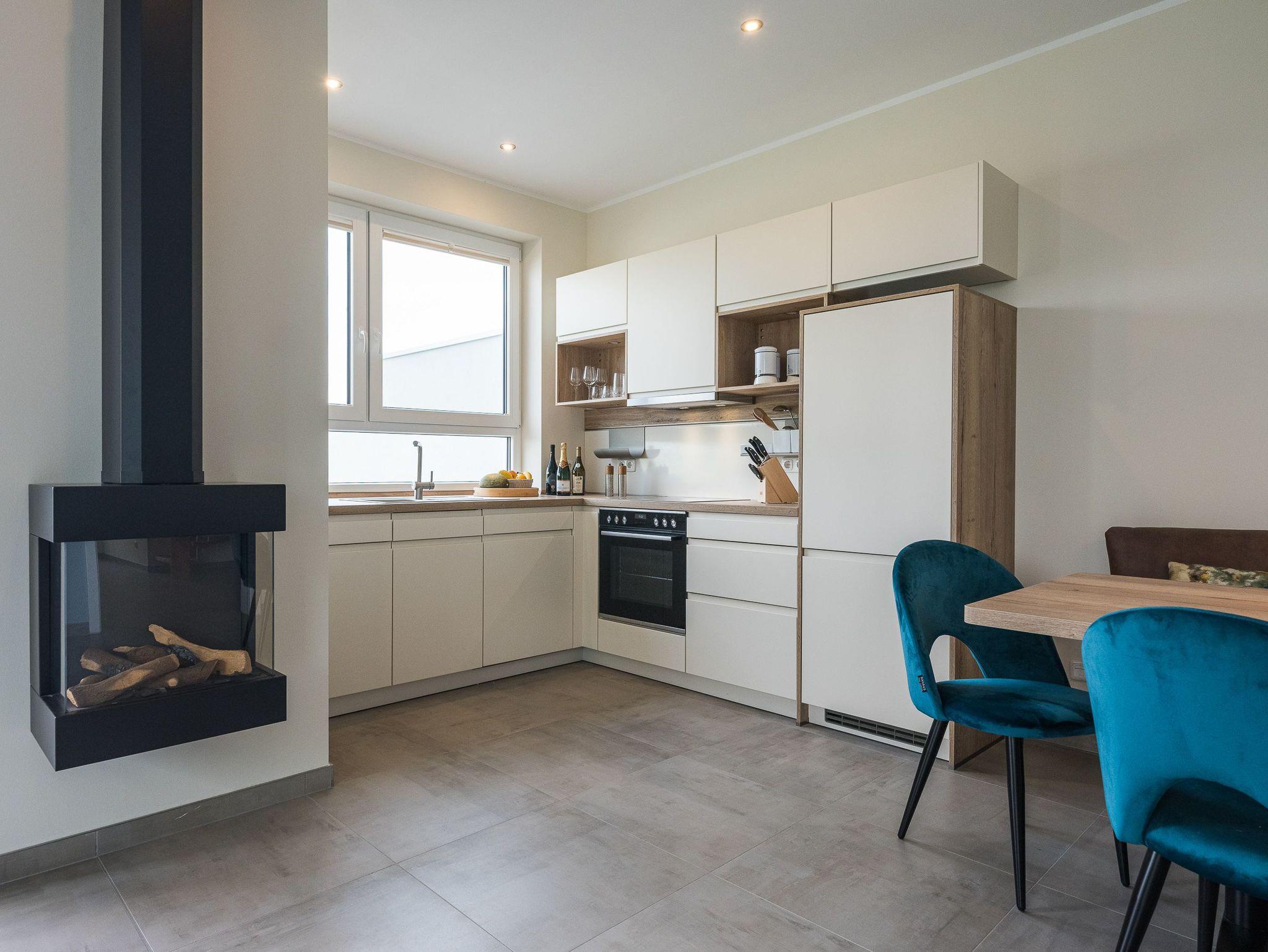 Der geräumige Wohnbereich verfügt über einen eleganten Gaskamin, der für eine gemütliche Atmosphäre sorgt und Ihren Abenden eine behagliche Wärme verleiht. Die Ferienhaushälfte ist komplett eingezäunt. Die hochwertige Ausstattung, die stilvolle Einrichtung und die ruhige Lage machen dieses Domizil zu einem wahren Juwel. Erleben Sie unvergessliche Ferientage in dieser luxuriösen Haushälfte und lassen Sie sich von der Schönheit der Natur verzaubern.