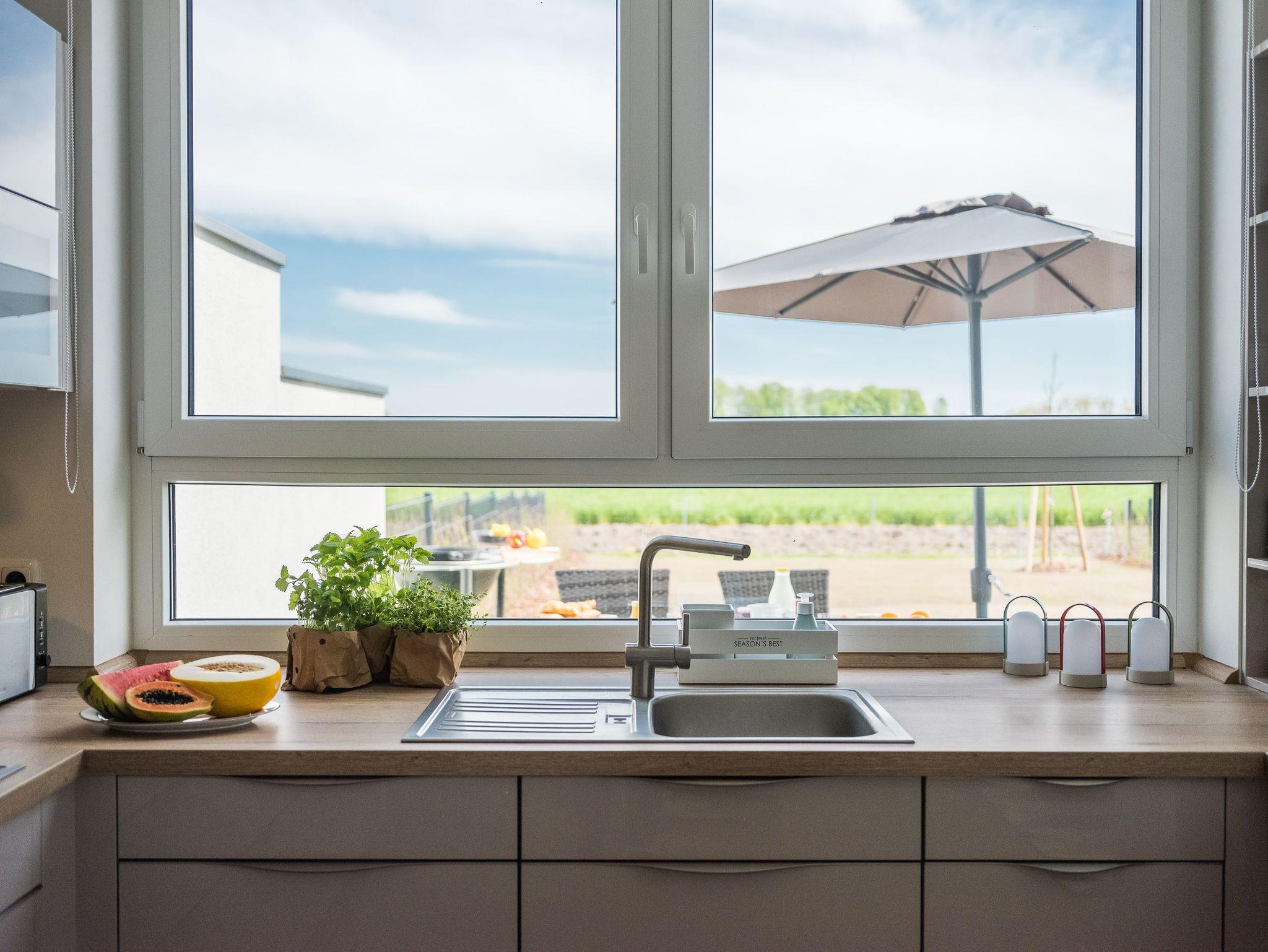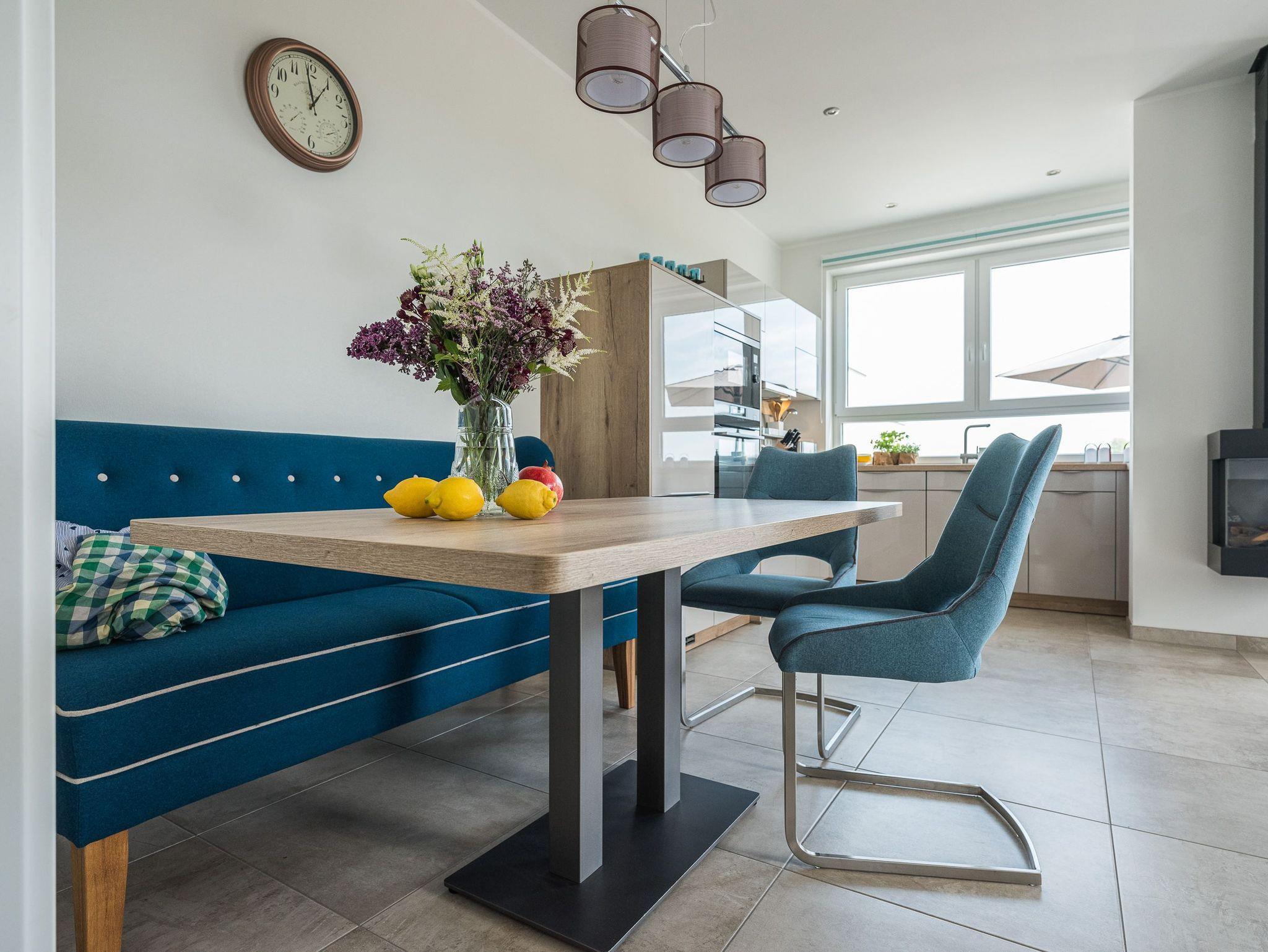 Ein großzügiger Wohn- & Essbereich mit offener Küche, bieten viel Raum für erholsame Urlaubstage mit Familie oder Freunden.