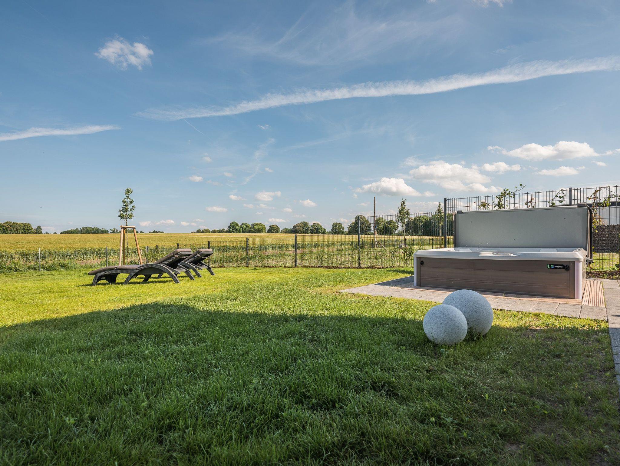 Ferienhaus mit unverbautem Traumblick auf Wiesen und Felder, mit Terrasse und großem Garten. 3 Schlafzimmer, 2 Bäder, Sauna und Außen-Whirlpool.