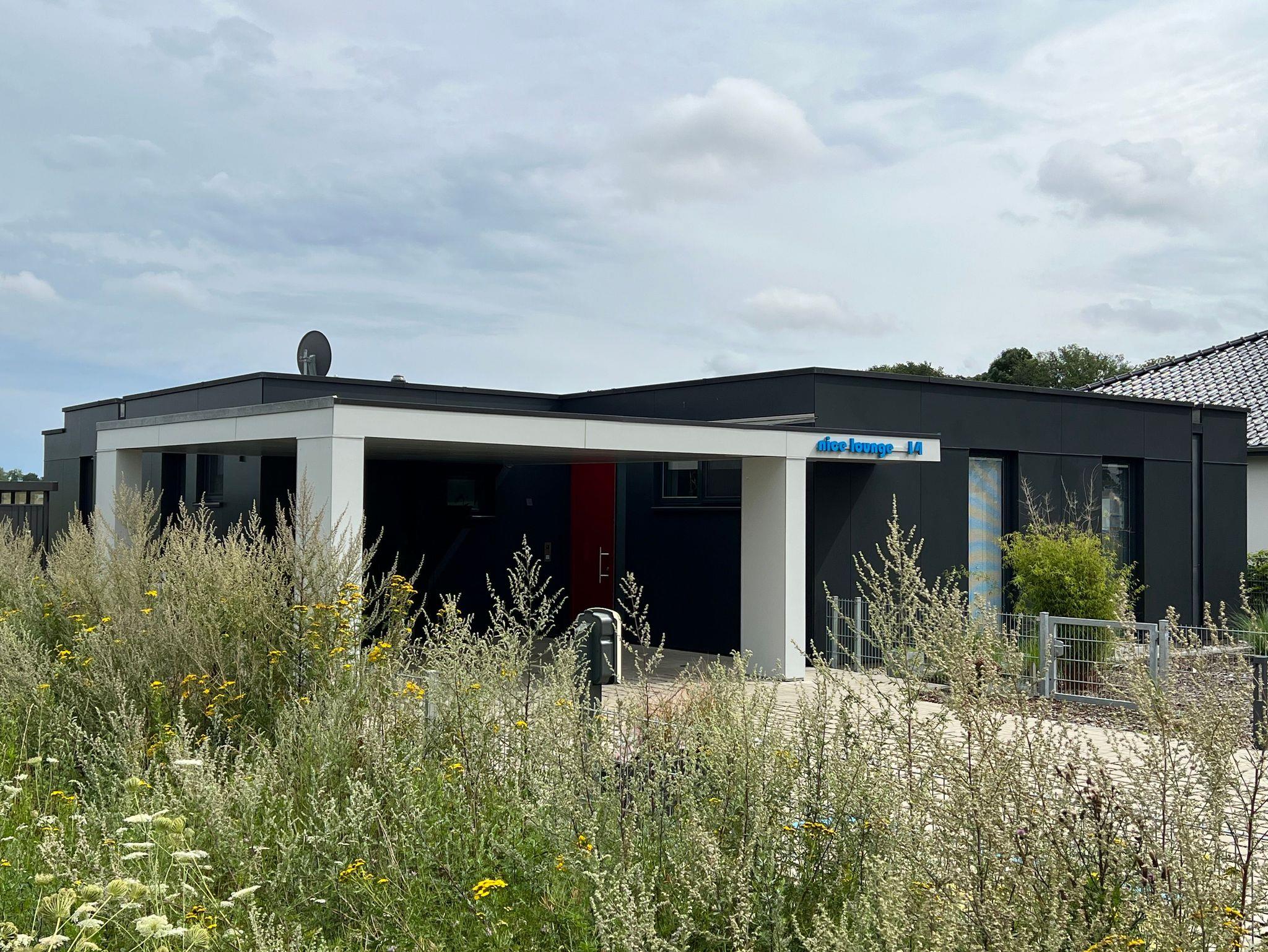 Exklusiver, freistehender Luxus-Flachdachbungalow mit Außen Whirlpool, Sauna, Kamin, 3 Schlafzimmern, 2 Bädern, Carport, Terrasse & großem Garten