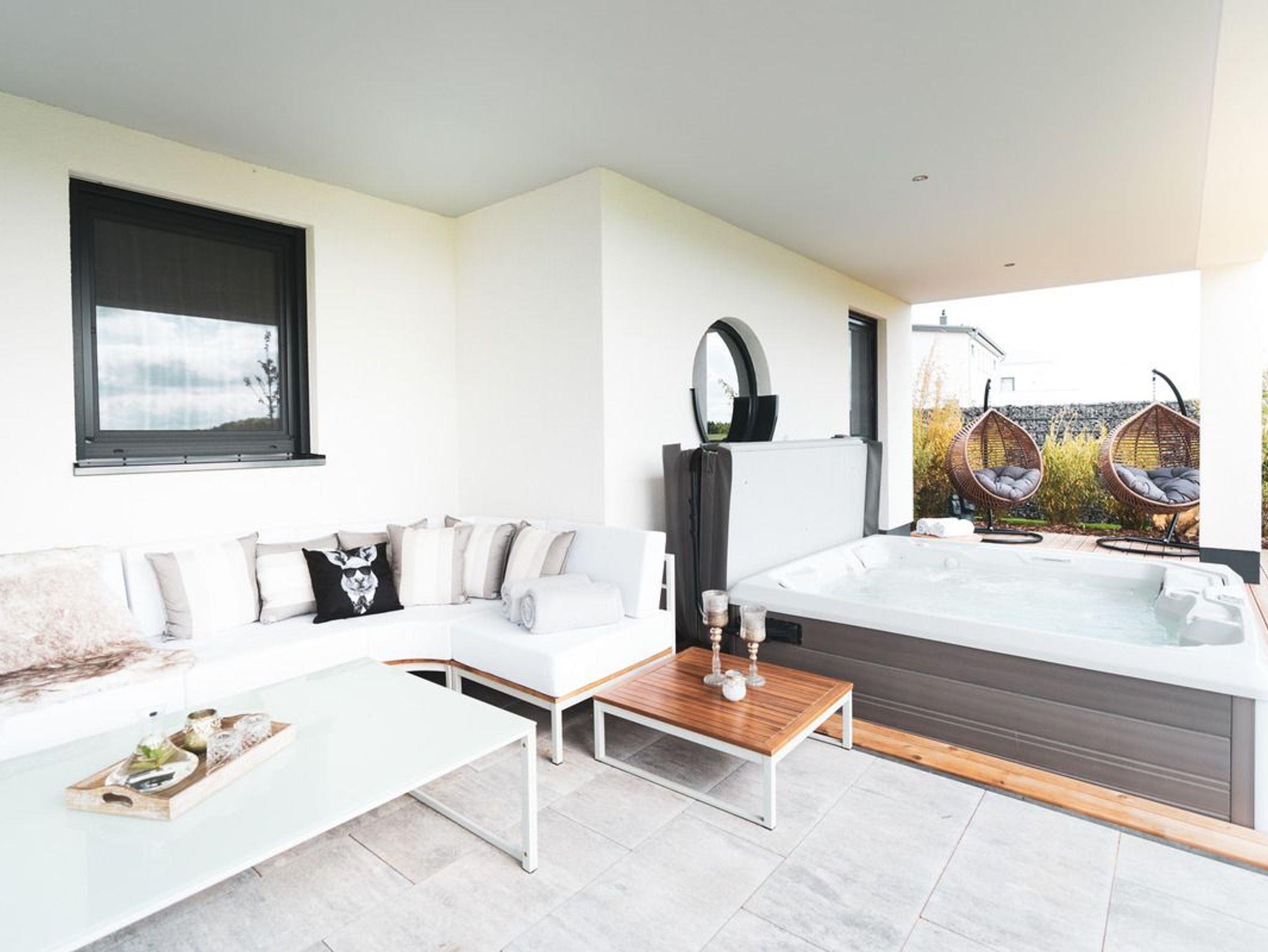 Der große und eingezäunte Garten bietet Ihnen mit einem überdachten Außen-Whirlpool, gemütlichen Lounge-Möbeln, Gartenliegen, einem Außengrill und einem großem Essbereich eine perfekte Umgebung, um die Natur zu genießen und zu entspannen.
