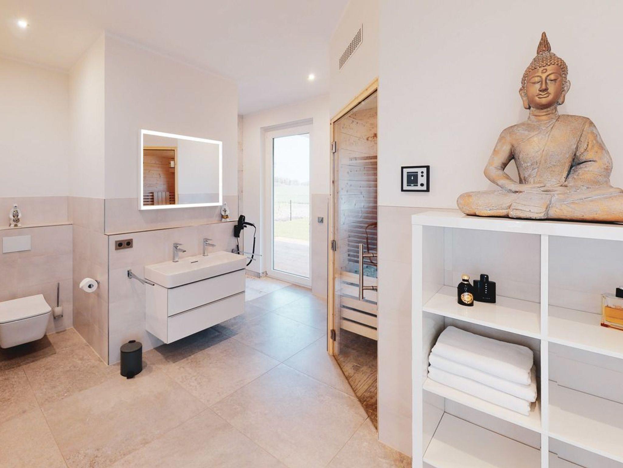 Diese atemberaubende Villa bietet auf 180 m² puren Luxus und höchsten Komfort. Mit drei Schlafzimmern und zwei Badezimmern finden Sie hier ausreichend Platz für einen traumhaften Aufenthalt. Das Badezimmer mit eigener Sauna und Radio schafft eine private Wellness-Oase, in der Sie sich perfekt entspannen können. Die offene Küche mit Kochinsel ist modern und vollständig ausgestattet, um selbst anspruchsvollste kulinarische Wünsche zu erfüllen. Der großzügige und offene Wohn- und Essbereich ist der ideale Ort für gesellige Stunden und gemeinsame Mahlzeiten. Die Villa ist stilvoll eingerichtet und bis ins kleinste Detail durchdacht.