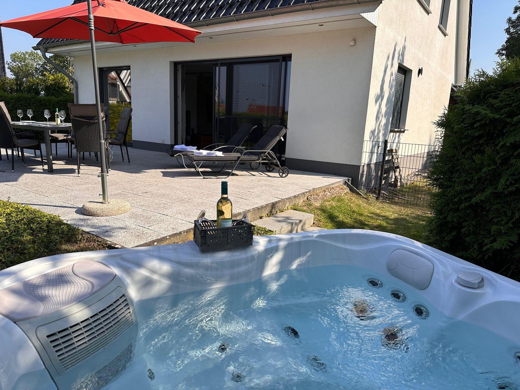 Der ganzjährig beheizte Außenwhirlpool mit 38 Grad Wassertemperatur und Hydromassagejets ist nur ein Highlight von vielen. In der Kombination Sauna, Gaskamin und Whirlpool wird Ihnen das Herz aufgehen.