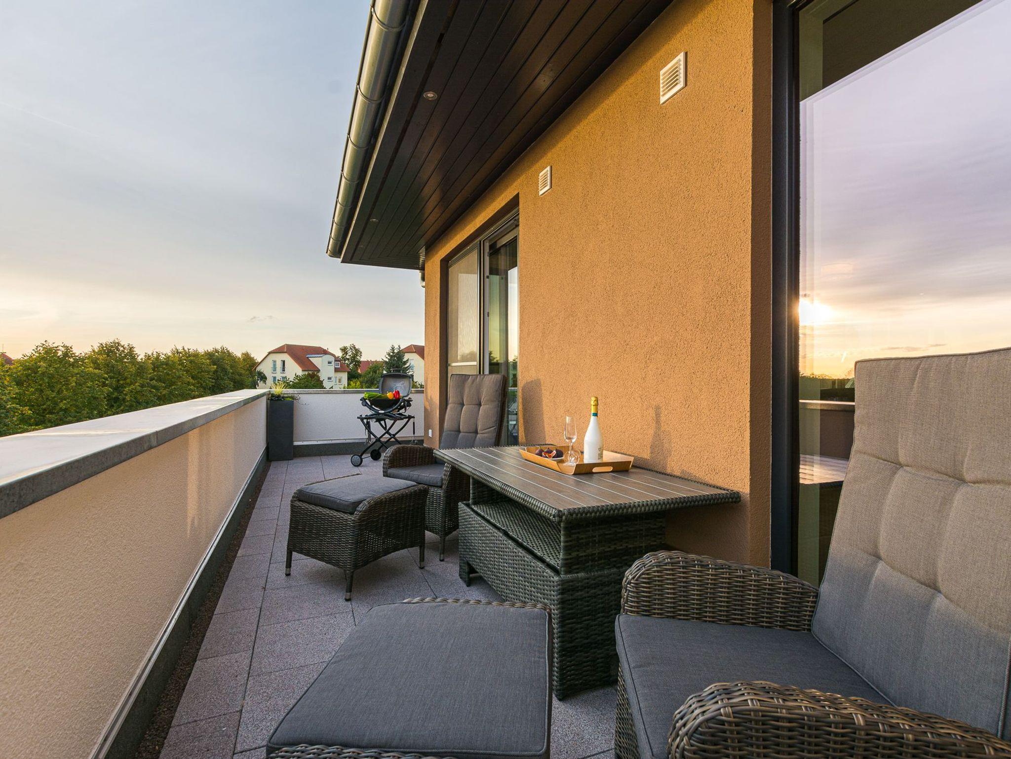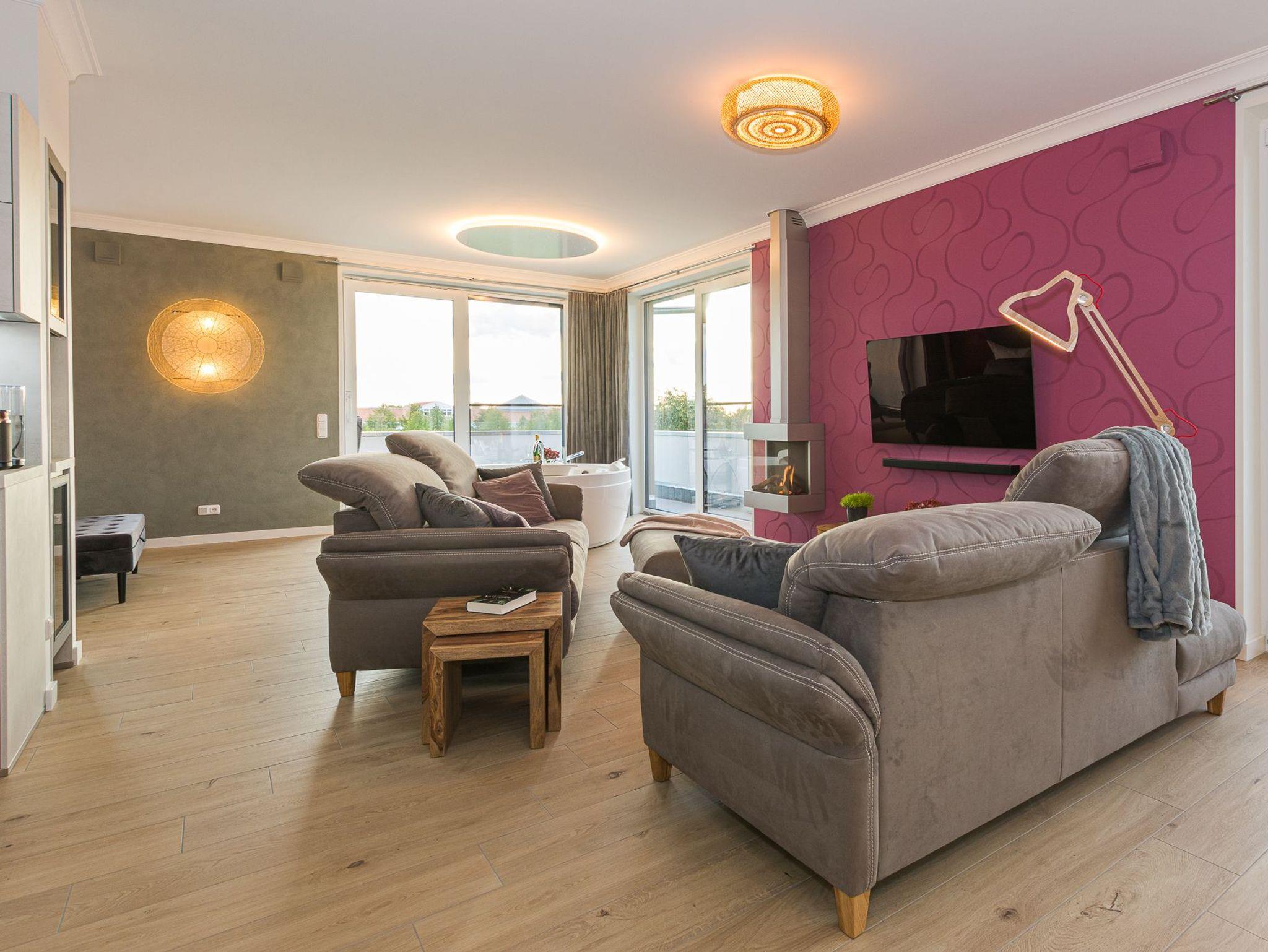 Das Luxus SPA Penthouse Sundowner befindet sich im 2. OG eines modernen Ferienhauses mit 6 separaten Luxus-Ferienwohnungen der Extraklasse in Göhren-Lebbin.