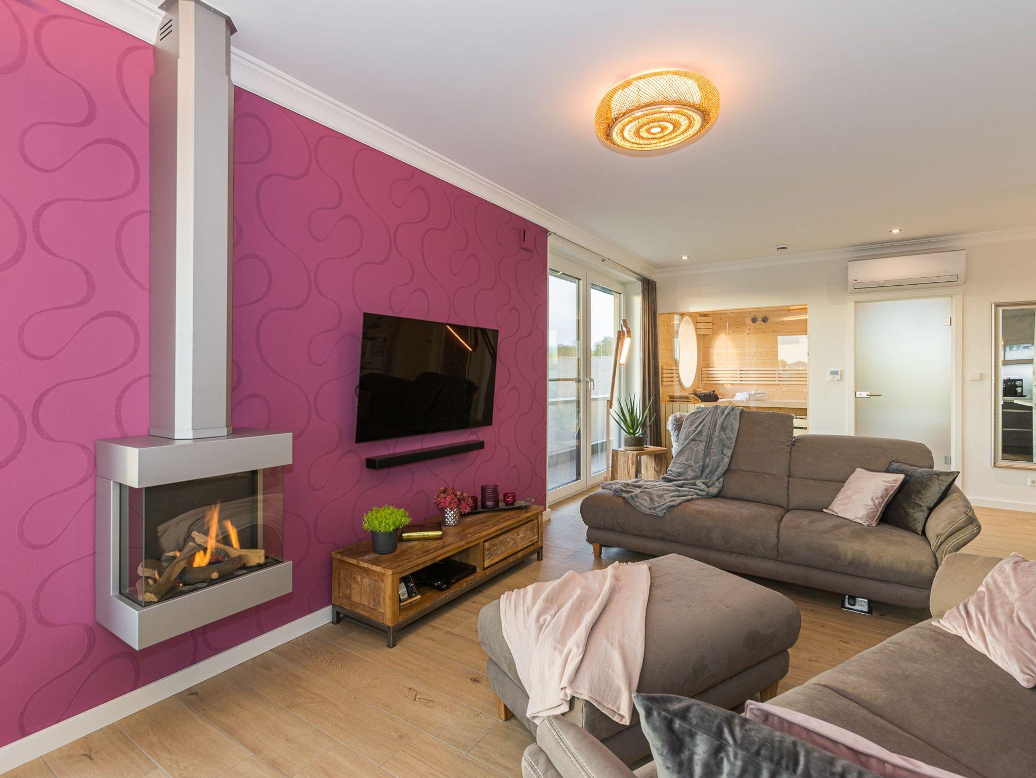 Wohnung verfügt jeweils über eine eigene Sauna und einen Gaskamin. Von