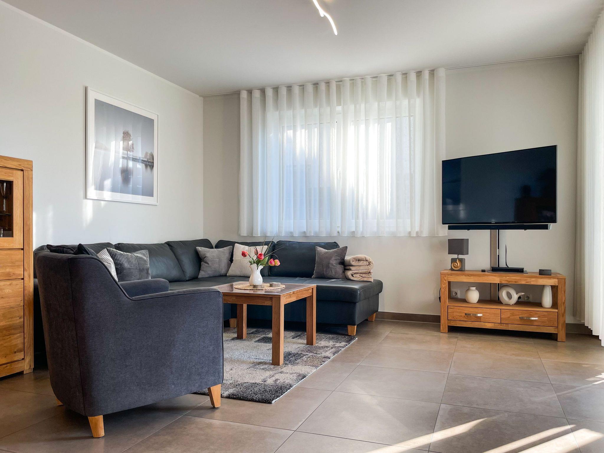 Herzlich willkommen in diesem großzügigen Ferienhaus mit 120m² Wohnfläche, das Ihnen einen erholsamen Aufenthalt bietet. Der offene Wohn- und Essbereich mit einem gemütlichen Gaskamin lädt zu geselligen Abenden und behaglichen Momenten ein. Mit 2 gemütlichen Schlafzimmern und 2 Bädern bietet das Ferienhaus ausreichend Platz für Ihre Familie oder Freunde.