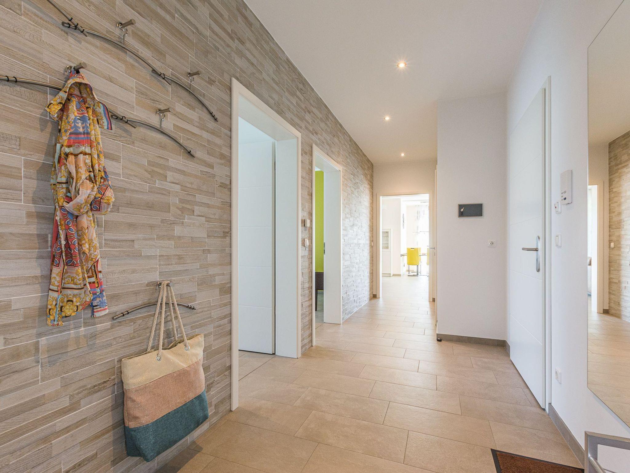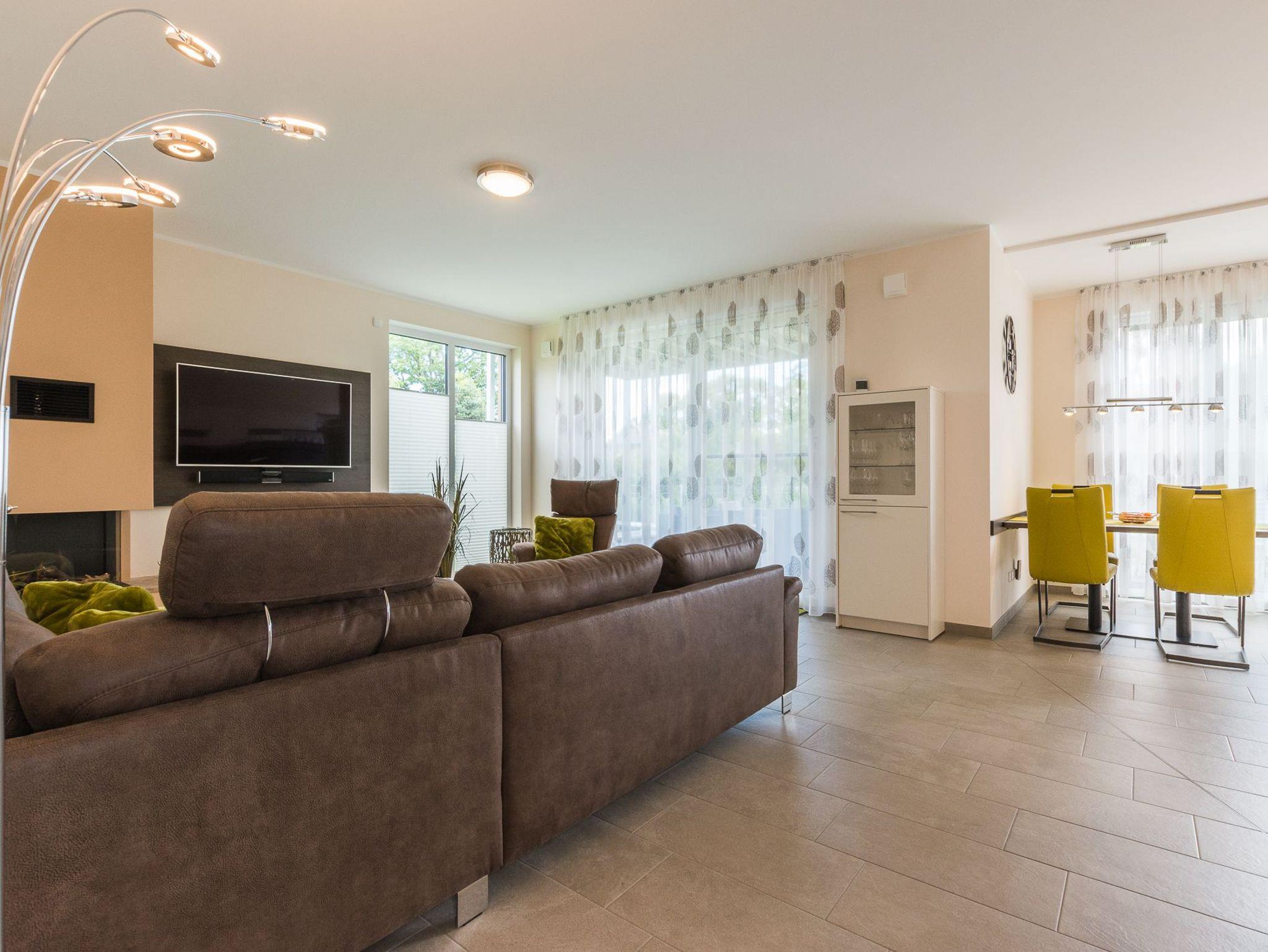 Mit 125m² Wohnfläche bietet diese Ferienwohnung ausreichend Platz für die ganze Familie. Der offene Wohn- und Essbereich ist der ideale Ort, um gemeinsame Momente zu verbringen. Die vollausgestattete Küche ermöglicht es Ihnen, leckere Mahlzeiten zuzubereiten und gemeinsam zu genießen. Die Ferienwohnung verfügt über zwei Badezimmer, von denen eines mit einer Sauna ausgestattet ist. Hier können Sie sich nach einem aktiven Tag herrlich entspannen und neue Energie tanken.