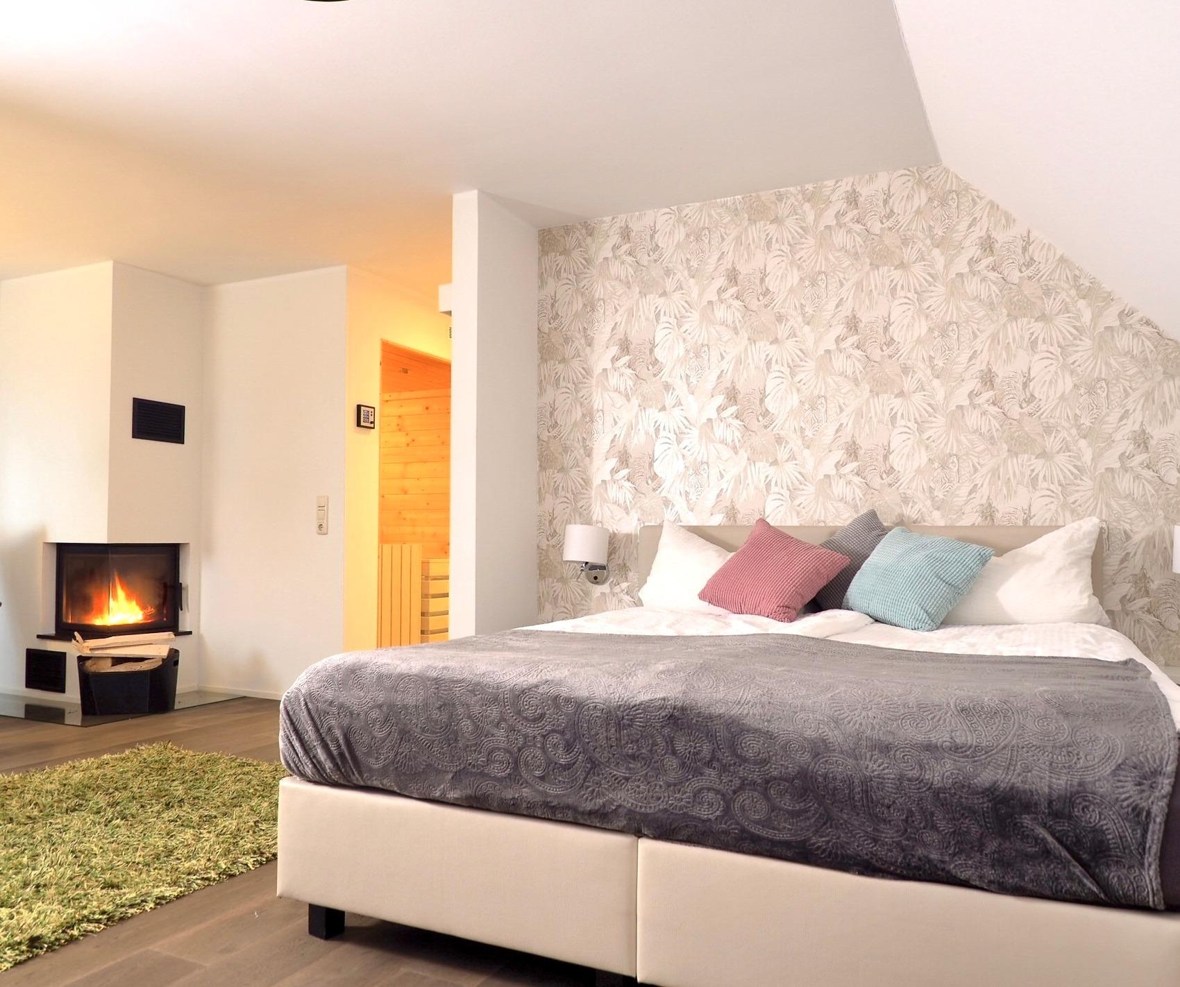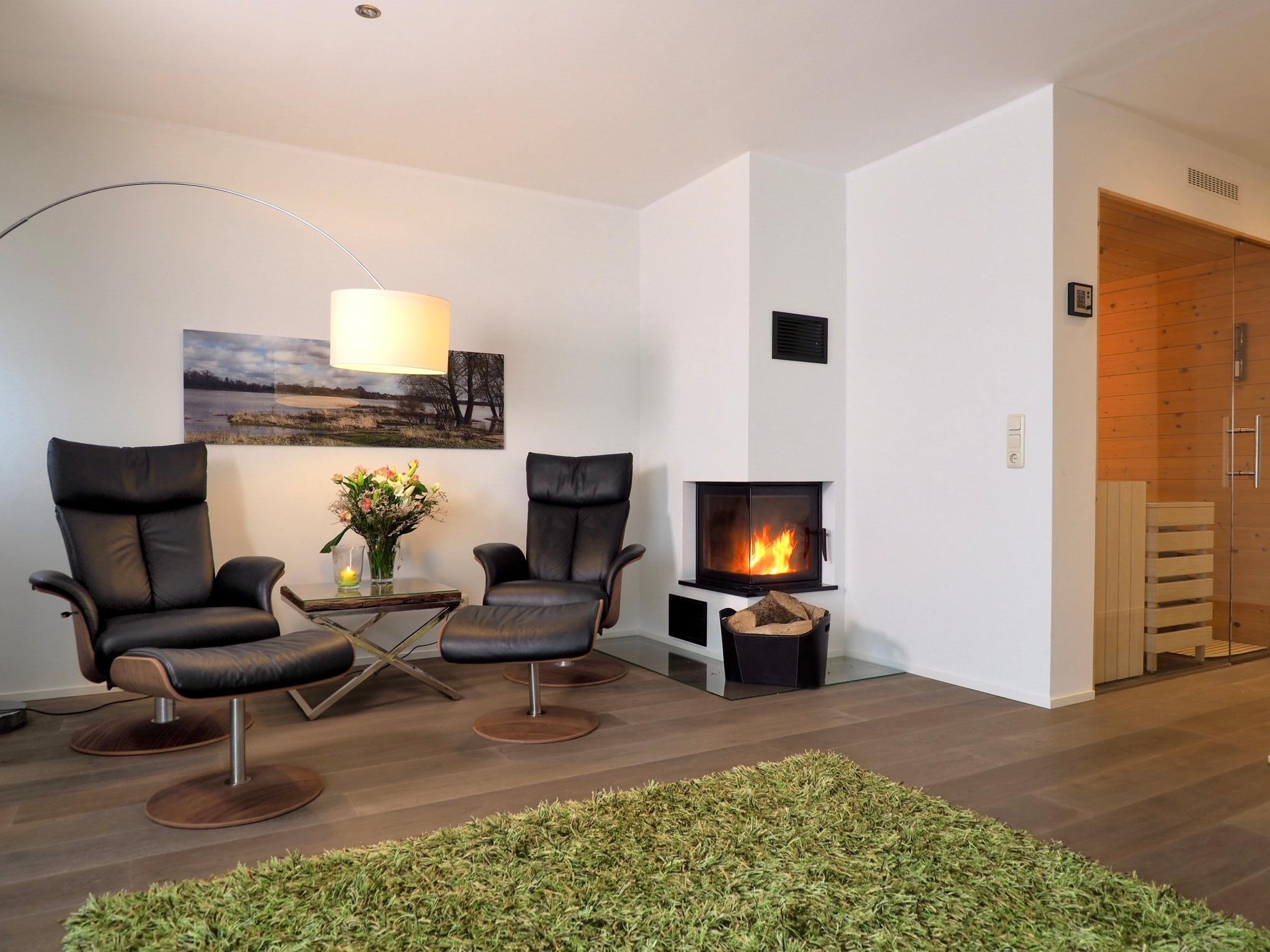 Dich erwarten neben einer Sauna und unserem großen Außen Whirlpool der ganzjährig auf 36° beheizt ist Zwei Kamine.