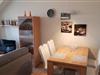 Der offene gestaltete Wohnraum mit Küchenzeile und Essbereich ist auf Ebene 1 im Dachgeschoß. Im Spitzboden, der Ebene 2, die über eine Treppe im Wohnraum erreichbar ist, befindet sich zusätzlich das separate Schlafzimmer. Das Sofa im Wohnraum kann als Schlafcouch genutzt werden, so dass durchaus auch eine dritte Person Platz findet, oder Sie aber auch einfach direkt auf dieser Ebene nächtigen können. Auch befindet sich auf dieser Ebene 1 das innenliegende Duschbad. Sowohl Schlaf- als auch Wohnraum haben Fliegengitter.