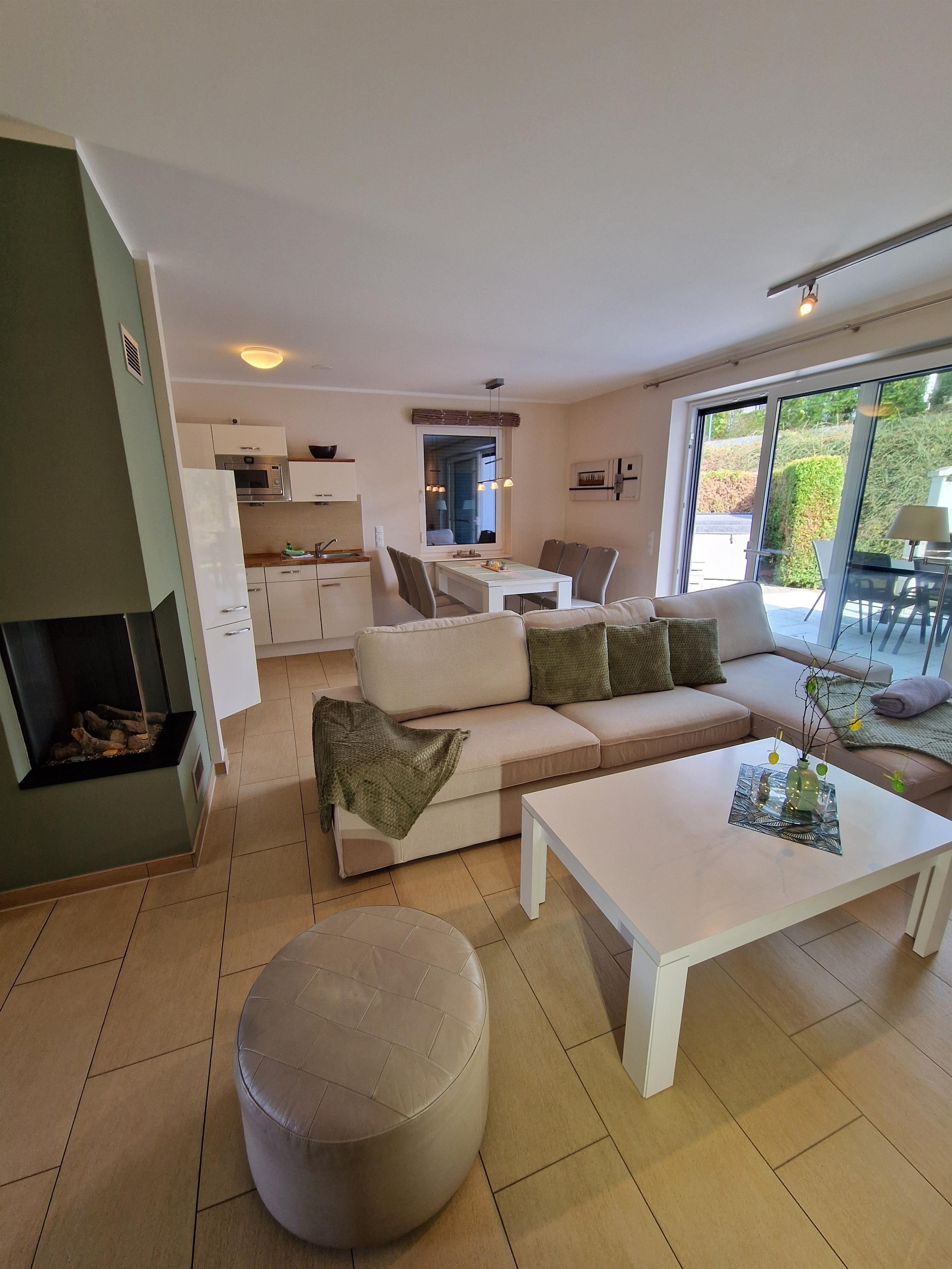 Im Außenbereich befindet sich ein Außen Whirlpool der bis zu 38 Grad beheizbar ist und auch im Winter keinerlei Wünsche für Wellness und Entspannung offen lässt, auf der Terrasse können Sie entspannt Frühstücken oder Ihren Abend am Grill ausklingen lassen. Im EG befindet sich ein großer gemütlicher Wohn-/Essbereich mit Essplatz, Sitzgruppe ,Kaminfeuer (Gas),Radio, Sat-TV eine voll ausgestattete Küche mit Backofen, Kühl und Gefrierschrank, Mikrowelle und vieles mehr. Ein Bad welches mit WC, Sauna und Dusche ausgestattet ist. Im OG gibt es 2 Schlafzimmer, jeweils mit einem Doppelbett sowie Fernseher und ein Bad mit WC und Dusche. Im Dachgeschoss befindet sich dann nochmal ein Schlafzimmer mit 2 Einzelbetten das gerne für die Kinder genutzt wir auch hier gibt es einen Fernseher. Für Ihren Aufenthalt haben wir eine Auswahl an DVDs , sowie Spiele und Bücher ( auch Kinderbücher ) zusammengestellt.