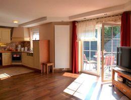 Das Ferienhaus am Fleesensee betreten Sie über einen offenen Flur zum Wohn- und Esszimmer. Die Küchenzeile ist mit einem Backofen, einem Cerankochfeld, einem Geschirrspüler, einem Kühlschrank mit Tiefkühlfach, einer Kaffeemaschine, einem Toaster und einem Wasserkocher ausgestattet. Der Esstisch mit Stühlen befindet sich in dem Teil des Wohnraumes, der durch das 8-eckige Türmchen geprägt ist. Im Wohnbereich gibt es eine Eckcouch, einen Tisch, zwei Schwingsessel, eine Stereoanlage mit Blu-ray/DVD-Player und einen modernen 50-Zoll-Flachbildfernseher. Das Haus verfügt über einen modernen Glasfaseranschluss (150 Mbit). Verschiedene Gesellschaftsspiele sind vorhanden. In der unteren Etage befindet sich außerdem ein Gäste-WC mit Waschbecken sowie ein extra Raum mit einem zweiten Zugang zum Haus. Eine Flurgarderobe und ein Schuhschrank sind hier vorhanden. Über eine Treppe gelangen Sie in die obere Etage. Im kleinen Flur stehen ein Kleiderschrank, ein Schreibtisch und ein Stuhl. Das große Bad ist ausgestattet mit einer Eckbadewanne, einer Dusche, einem Waschbecken und einem WC. In einem Schlafzimmer stehen ein Doppelbett und eine Kommode. Das zweite Schlafzimmer ist mit zwei Einzelbetten, einem Kleiderschrank und einem weiteren Flachbildfernseher sowie im Türmchen mit einem Schwingsessel und einem kleinem Tisch eingerichtet. Das Ferienhaus ist mit einer Heizung (teilweise Fußbodenheizung) ausgestattet und somit für die ganzjährige Nutzung geeignet. Vom Wohnzimmer aus gelangen Sie auf die Terrasse im Garten. Sie ist ausgestattet mit Gartenmöbeln und einen Grill. Im Garten befindet sich eine Liegewiese mit einer Schaukel. Ihren PKW können Sie auf dem Grundstück parken. Sie dürfen gern den abschließbaren Carport benutzen. Mitgebrachte Fahrräder können dort untergebracht werden. Da das Grundstück komplett eingezäunt ist, eignet es sich besonders auch für Familien mit kleinen Kindern.
