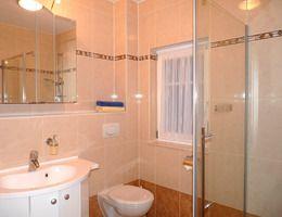 Das Ferienhaus am Fleesensee in Untergöhren ist neu erbaut und komfortabel für Sie eingerichtet. Über eine Außentreppe gelangen Sie auf die höhere Ebene im Garten zum Hauseingang. Diesen betreten Sie über eine Stufe im Flur mit Flurgarderobe, Spiegel und Schuhschrank. Von hier gelangen Sie in das Wohnzimmer, die Küche ein Bad und den Abstellraum. Das Wohnzimmer ist eingerichtet mit zwei Couchen, einem Sessel, einem kleinen Tisch, einer weiteren Sitzecke mit zwei Sesseln und einem Beistelltisch, einem Sideboard, dem Esstisch mit Stühlen, dem Fernseher und dem Kamin. In der Küche finden Sie einen kleinen Tisch mit Stuhl und eine moderne Einbauküche mit allem was Ihr Herz begehrt. Sie ist ausgestattet mit einem Backofen, einem Cerankochfeld, einem Kühlschrank mit Tiefkühlfach, einem Geschirrspüler, einem Spülbecken, einer Mikrowelle, einer Dunstabzugshaube, einer Kaffeemaschine, einem Wasserkocher, einem Toaster und einem Radio. Im Badezimmer des Erdgeschosses gibt es eine ebenerdige Dusche, einen Waschtisch mit Schrank, einen Spiegelschrank und das WC. Im Abstellraum haben Sie Platz für Ihre Koffer. Über eine Treppe im Flur gelangen Sie nach oben zu den drei Schlafzimmern und einem weiteren Bad. Alle Schlafzimmer haben einen Zugang zu einem kleinen Balkon. Das große Schlafzimmer zur Seeseite mit Seeblick ist eingerichtet mit einem 1,80 m Doppelbett, einem Kleiderschrank, einem Relaxsessel, einem kleinen Tisch, einem Stuhl und einem Fernseher. Ein weiteres Schlafzimmer ist eingerichtet mit einem 1,60 m breites Doppelbett, einer Garderobe, einem Wäscheschrank und einem Stuhl. Im dritten Schlafzimmer sind ein 1,40 m breites Doppelbett, eine Kommode, eine Garderobe und ein Radio. Das Bad dieser Etage hat eine Badewanne, ein Waschbecken, einen Spiegel, ein WC und eine Handtuchheizung. Die untere Etage des Ferienhauses ist mit einer Fußbodenheizung beheizbar. Auf dem Grundstück können Sie zwei Terrassen mit Gartenmöbeln nutzen. Die obere Terrasse ist gleich am Eingang. Auf der untere Terrasse steht ein Steingrill und ein Holzgartenhaus, in dem Sie Ihre Fahrräder unterbringen können. Einen Parkplatz unter dem Carport gibt es auf dem Grundstück. Weitere Parkplätze finden Sie auf dem 50 m entfernten öffentlichen Parkplatz.