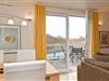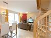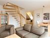 Die Ferienwohnung befindet sich im Obergeschoss der Villa Royal . Mit einem offenen Wohn - und Essbereich, sowie einer Küche, einem Bad und zwei Schlafzimmern. Sie bietet ausreichend Platz für 4 Personen. Im Erdgeschoss der Wohnung befindet sich der Wohn- und Essbereich, ein Badezimmer mit Sauna, Dusche und WC und ein Schlafzimmer mit Doppeltbett und Kleiderschrank. Die voll ausgestattete Küche bietet zahlreiches Zubehör und Elektrogeräte. Der Wohnbereich ist mit einem gemütlichen 3-Sitzer Sofa, Sessel und einem Elektro-Kamin ausgestattet, der für gemütliche Abende sorgt .Über den Wohnbereich gelangen Sie auf den großzügigen möblierten Balkon.