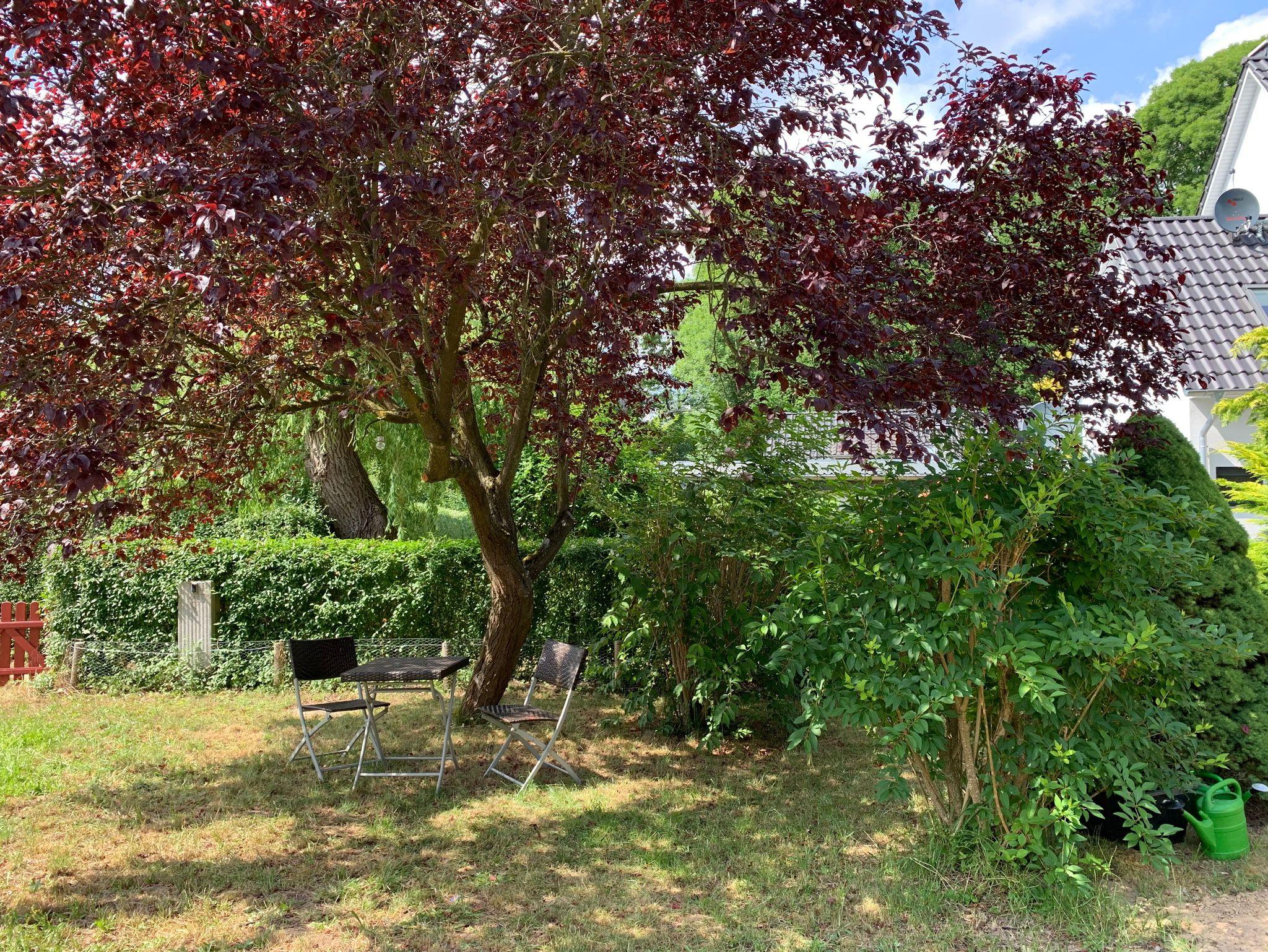 Der Bungalow bietet zudem einen großen Garten mit einer kleinen Terrasse, auf der Sie die frische Luft und die Umgebung zusammen mit Ihrer Familie genießen können. Die Terrassenmöbel laden dazu ein, entspannte Stunden im Freien zu verbringen.