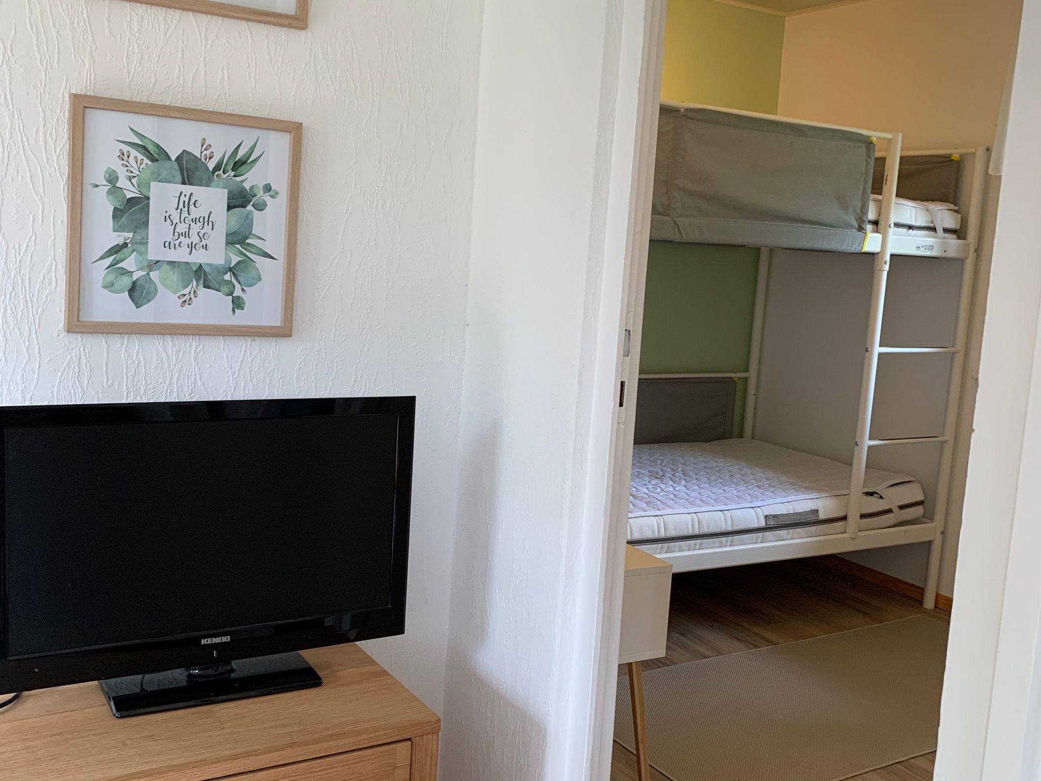 Der Bungalow Guilietta bietet Ihnen 40m² Wohnfläche und eine gemütliche Atmosphäre. Der Wohnbereich ist mit einem TV ausgestattet, und die offene Küche ermöglicht ein kommunikatives Zusammensein. Die Schlafmöglichkeiten umfassen ein Schlafzimmer mit Doppelbett und ein weiteres Schlafzimmer mit einem Etagenbett, ideal für Familien. Das Badezimmer ist kompakt gestaltet und verfügt über eine Dusche.