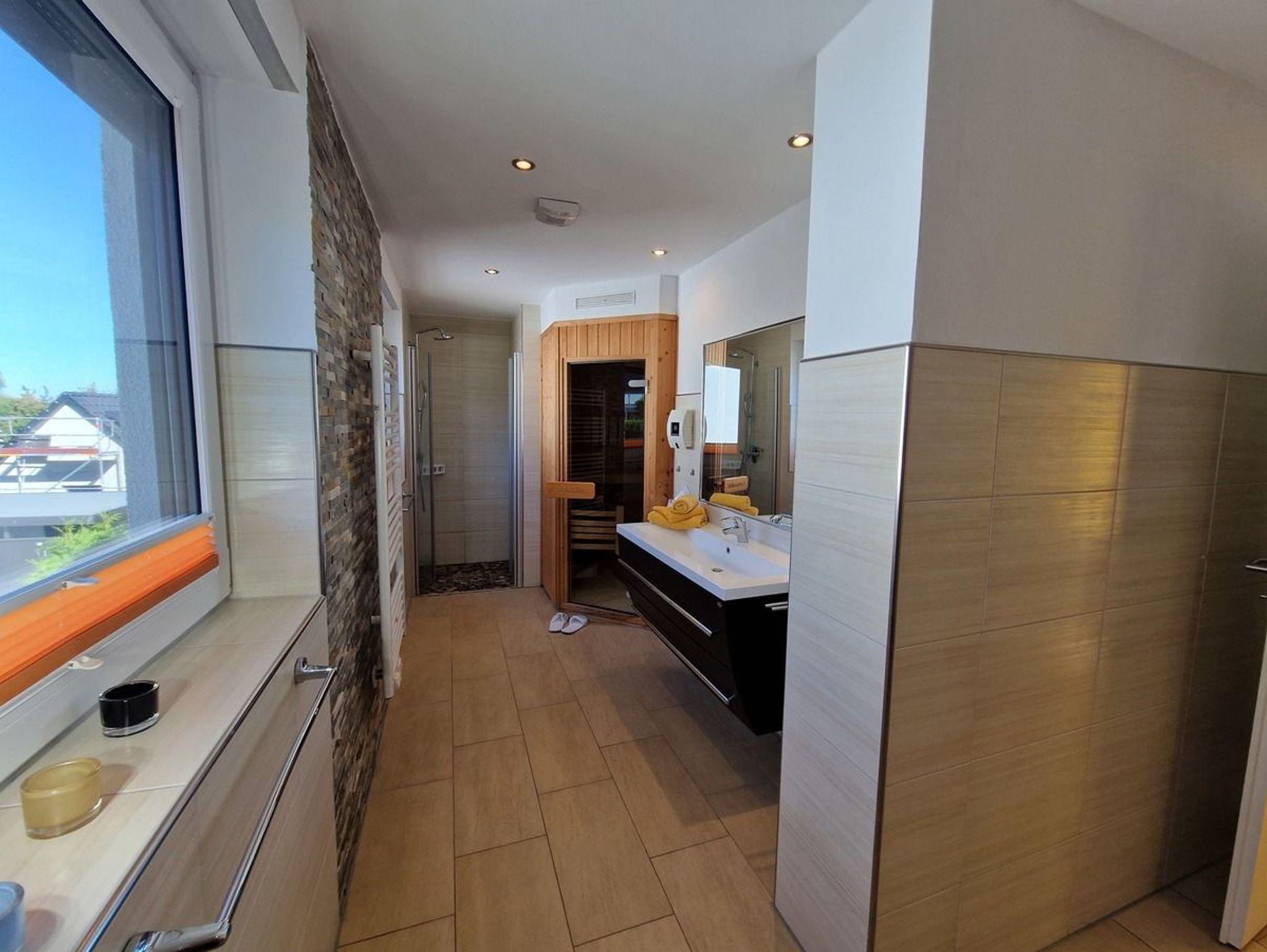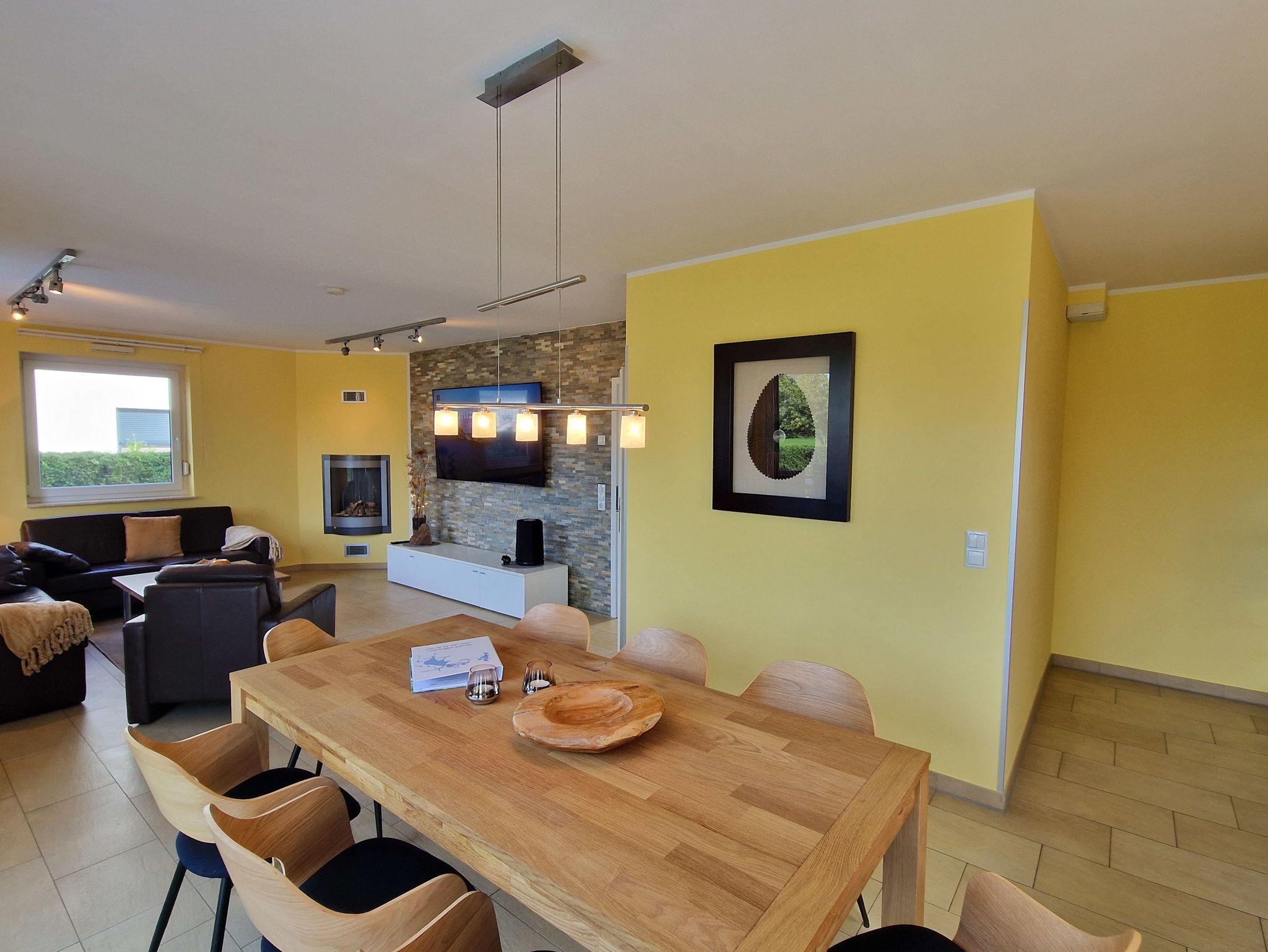Das Haus verfügt insgesamt über 4 Schlafzimmer mit eigenen TV und großen Boxspringbetten. Die Villa bietet Ihnen einen großen Wohnbereich mit einer offenen Küche, wo Sie hervorragend als Familie gemeinsam kochen und an dem großen Esstisch Ihre Köstlichkeiten genießen können. Im offenen Wohnbereich können Sie vom Sofa aus gemütliche Filmabende erleben oder einfach die wohltuende Wärme des Gas Kamins genießen.