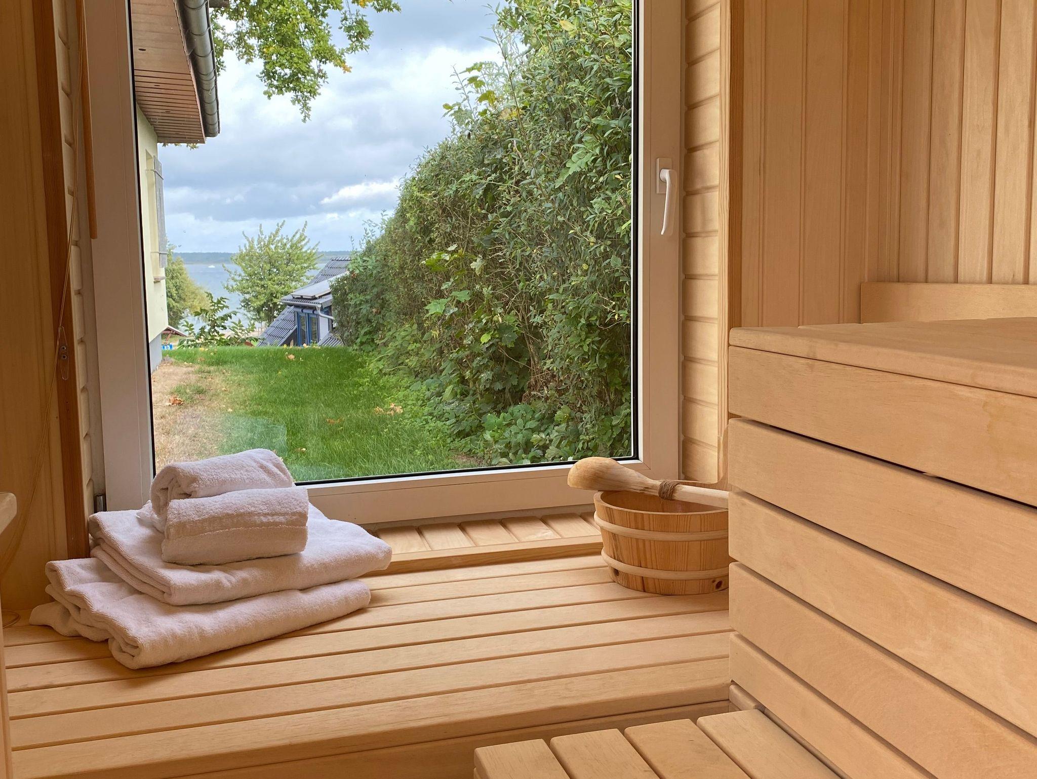 Alle Ferienwohnungen (38, 46, 58 und 65qm) für 1 bis 4 Personen haben eine Terrasse / Balkon mit freiem Blick auf den Fleesensee. Für alle Gäste steht eine Außensauna zur gemeinschaftlichen Nutzung (gegen Gebühr).