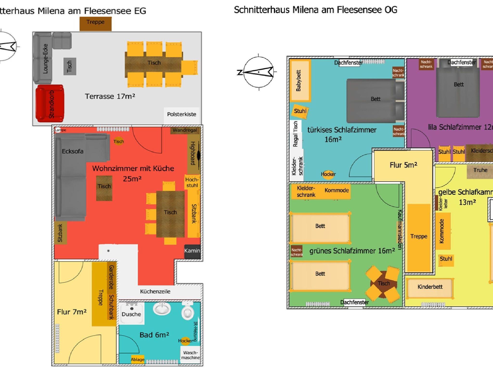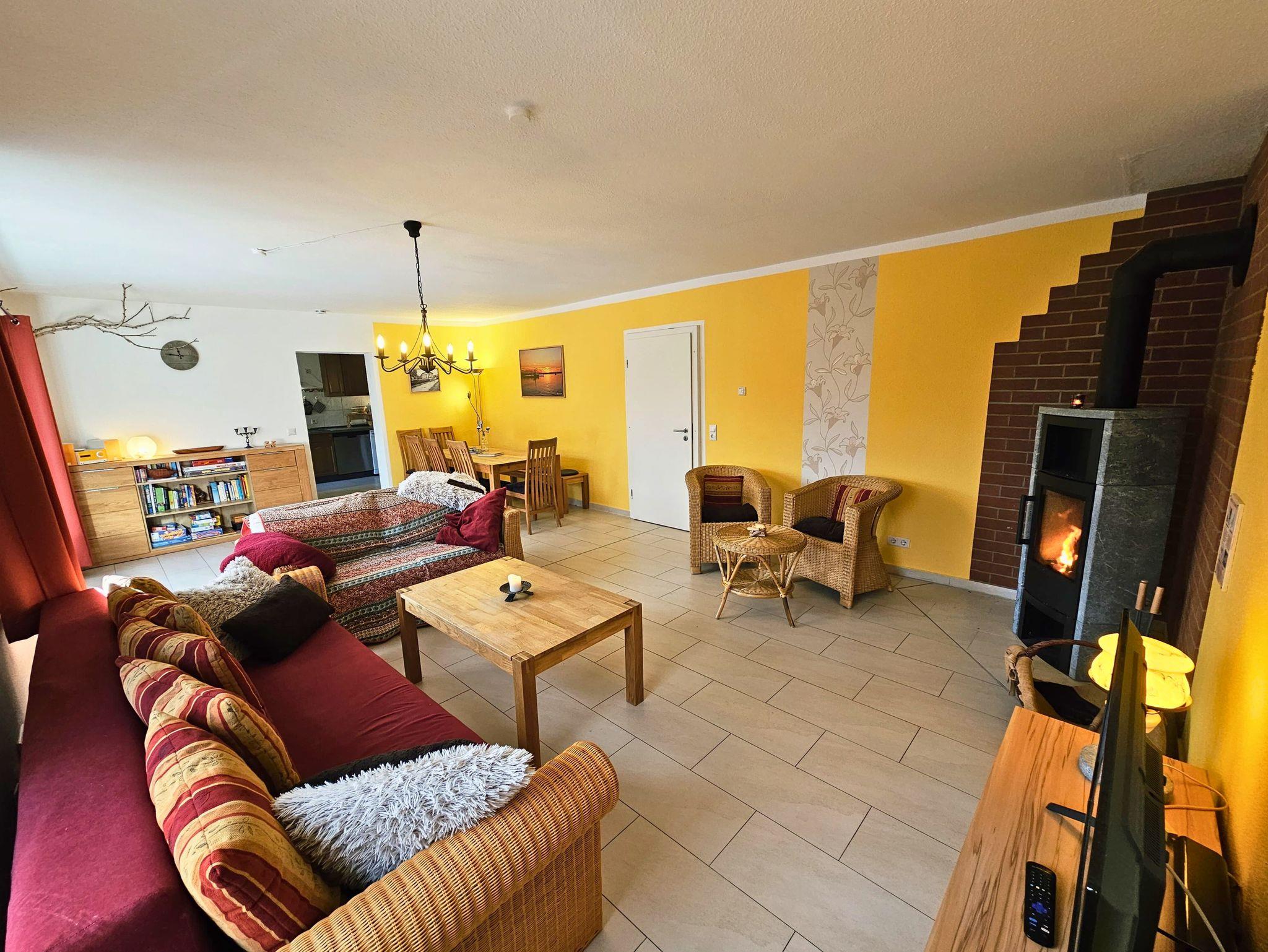 Beim Ferienhaus Milena handelt es sich um ein über 150 Jahre altes historisches Schnitterhaus, das durchsaniert & hochwertig ausgestattet ist. Unsere Milena wurde 2025 vom Deutschen Tourismusverband offiziell mit 3 Sternen (***) bewertet: „Wohnliche Gesamtausstattung mit gutem Komfort“. Sie bietet Platz für 4 bis 7 erwachsene Personen & zusätzlich maximal 2 kleinere Kinder. Auf 100m² über 2 Etagen befinden sich 5 Wohnräume: ein 24m² großes Wohnzimmer mit neuem Kaminofen, einer modernen offenen Küche & einem Esstisch, einem Ecksofa, einem smarten Flachbild-TV (mit DVD-Player & einigen DVDs) & einer smarten Musikanlage (mit Bluetooth/CD/Radio/USB). Daneben gibt es ein Tageslicht-Vollbad mit Dusche & im Dachgeschoss insgesamt 4 separate Schlafzimmer: