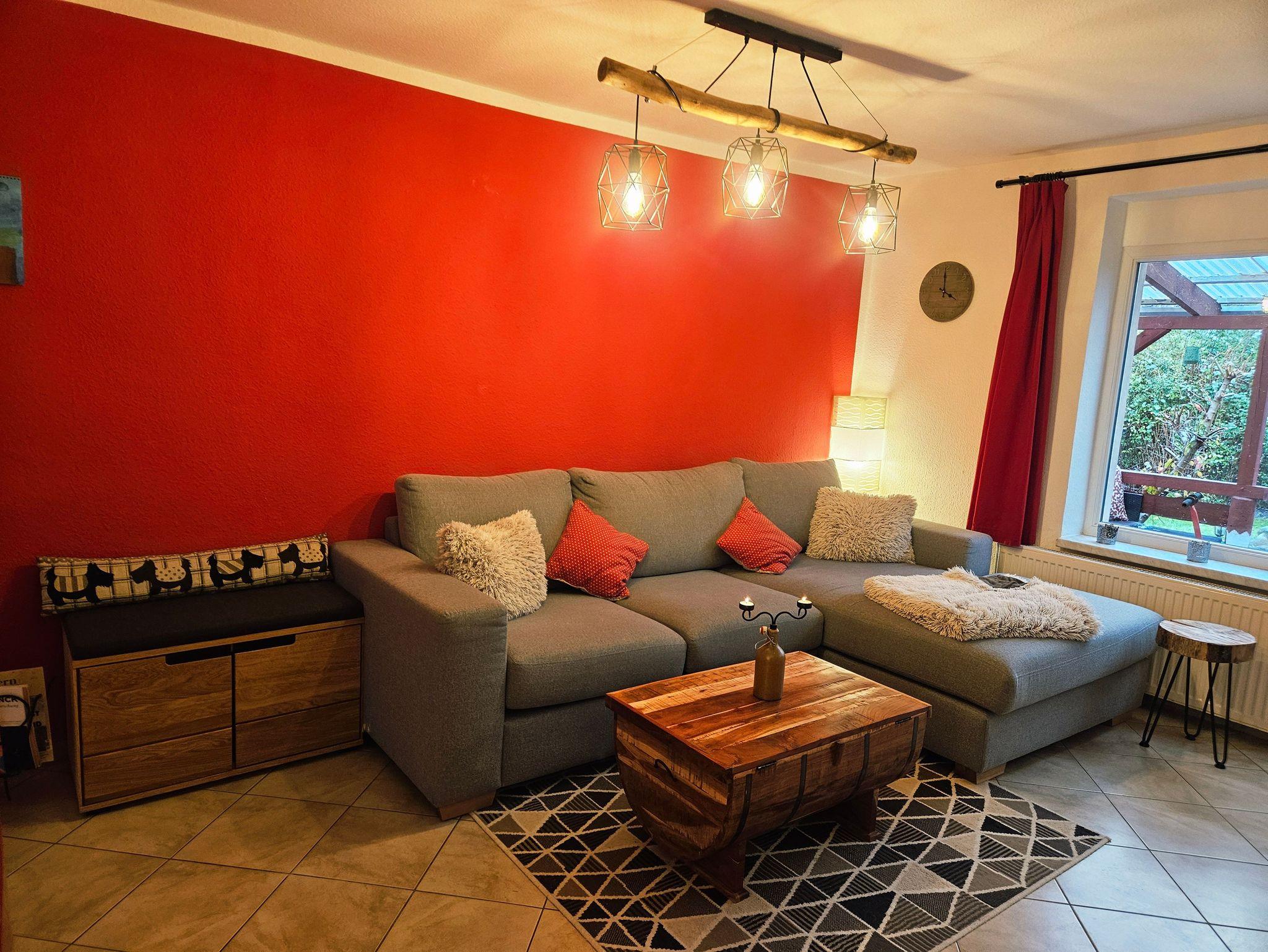 Zur Ausstattung gehören zudem kostenfreies WLAN (mit schnellem Glasfaseranschluss), große Waschmaschine, Fön, kleine Spülmaschine, ein Backofen mit Ceran-Kochfeld & Dunstabzugshaube, Mikrowelle, Kühl-Gefrier-Kombi, Toaster, Kaffeemaschine, Wasserkocher, Mixer, hochwertiges Geschirr & Kochutensilien, Verdunklungsmöglichkeiten, Kuscheldecken & -kissen, teilweise Insektenschutzgaze in den Fenstern, ein Staubsauger, eine Spieleauswahl & ein Büchertauschregal.