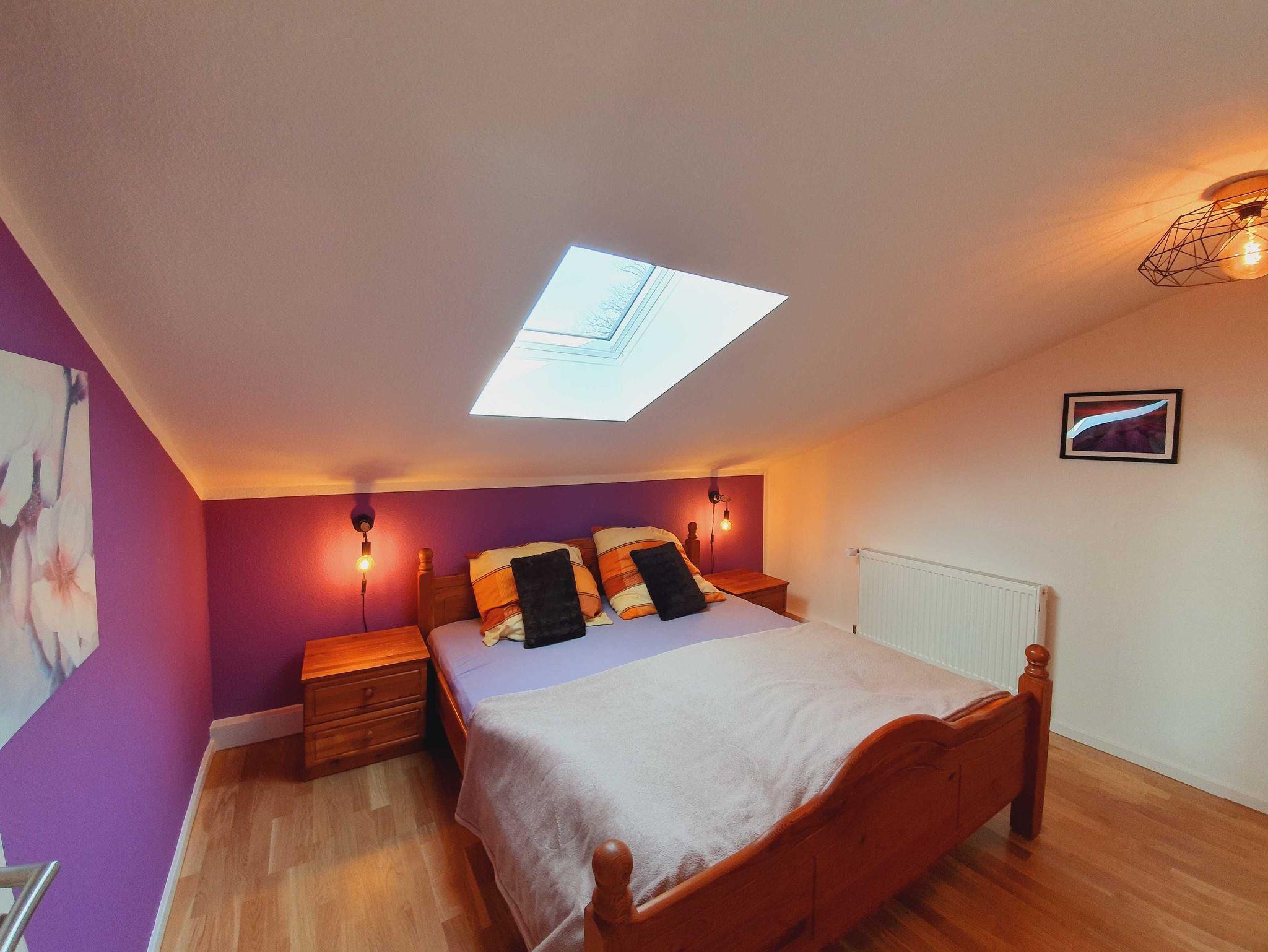 - lila Zimmer mit 1 Doppelbett (180x200cm)