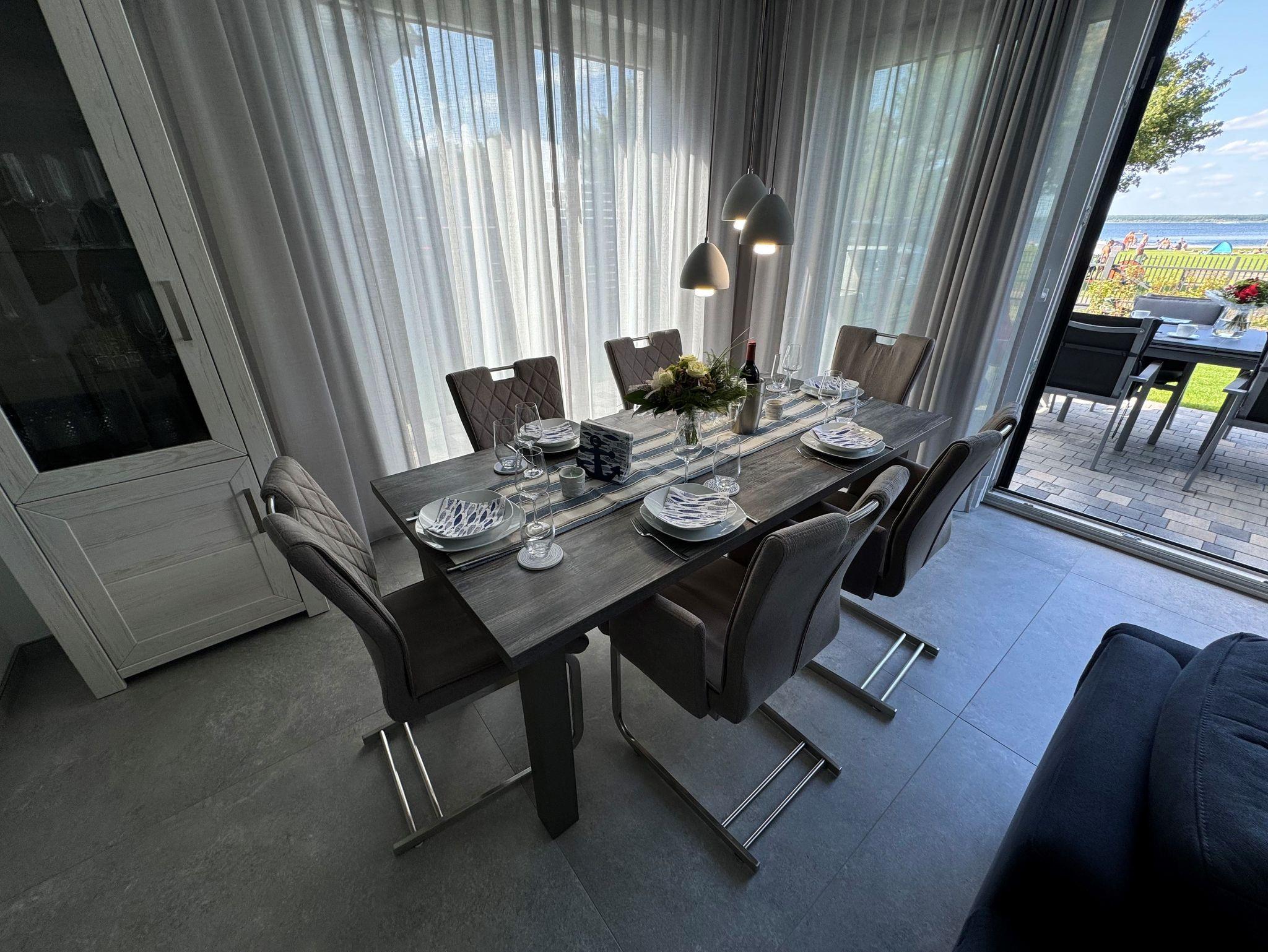 Willkommen in Ihrem Strandhaus am See ? ein luxuriöser Rückzugsort, der keine Wünsche offen lässt. Dieses Ferienhaus besticht durch seine direkte Seelage und bietet eine außergewöhnliche Kombination aus modernem Komfort und natürlicher Schönheit. Hier finden Sie die perfekte Balance zwischen Entspannung und exklusivem Wohnen. Das Strandhaus Marie-Team bietet auf 103m² puren Luxus und Komfort. Die beiden Schlafzimmer sind mit bequemen Boxspringbetten ausgestattet und garantieren erholsamen Schlaf. Dazu kommen zwei moderne Badezimmer, die höchsten Ansprüchen gerecht werden. Der großzügige Wohn- und Essbereich ist das Herzstück des Hauses. Mit seinem Kamin und den großen Panoramafenstern, die einen atemberaubenden Blick auf den See bieten, ist dieser Raum perfekt für entspannte Abende mit Familie und Freunden. Die moderne Küche lässt keine Wünsche offen. Mit hochwertigen Geräten und umfangreicher Ausstattung bietet sie alles, was Sie für kulinarische Highlights benötigen. Eine moderne Klimaanlage garantiert jederzeit angenehme Temperaturen im gesamten Haus.