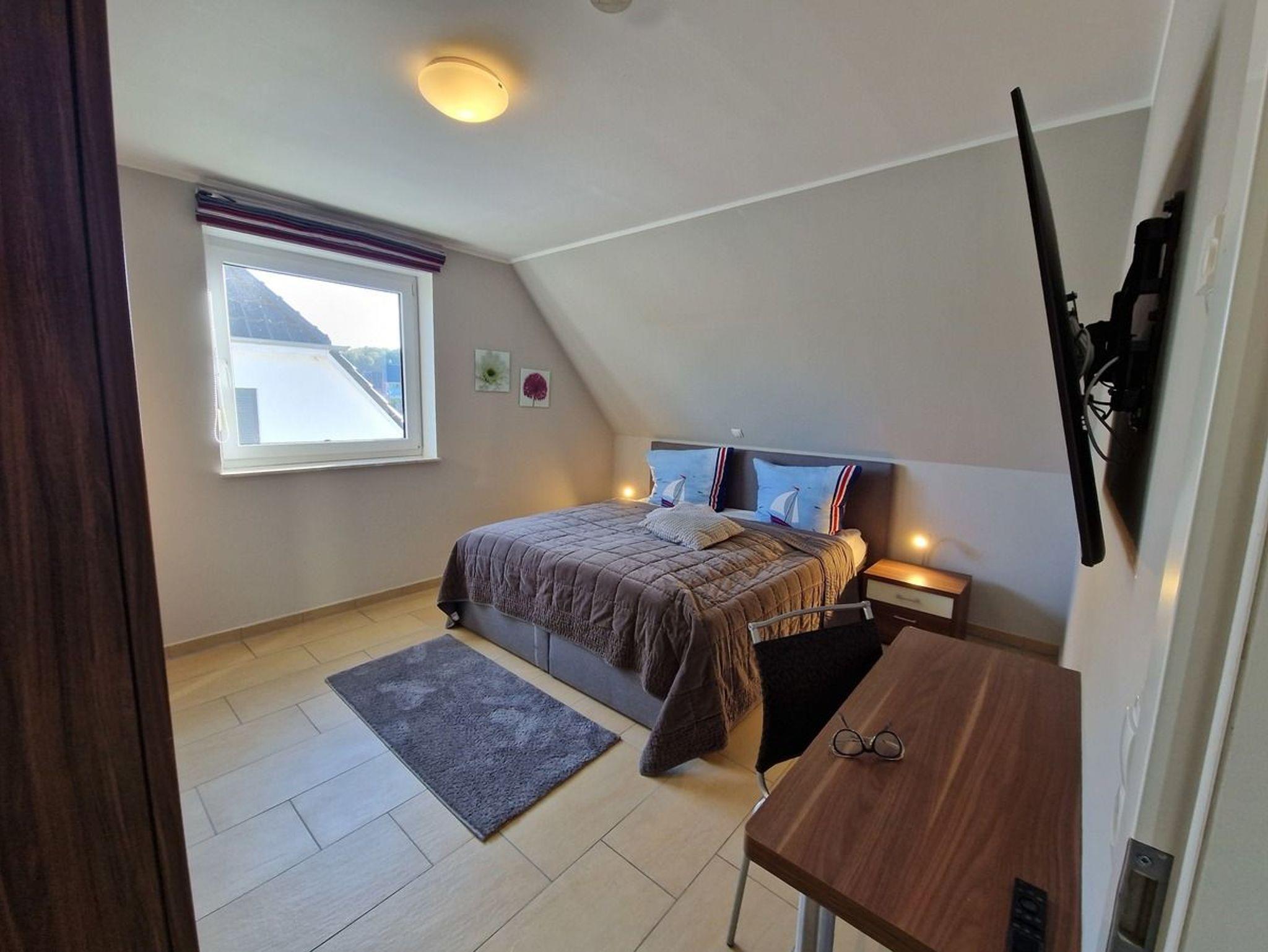 Die Villa erstreckt sich über großzügige 145 m², verteilt auf drei Etagen, und bietet Ihnen einen komfortablen Rückzugsort. Mit insgesamt vier Schlafzimmern, davon eines im Erdgeschoss, sowie je einem Badezimmer im Erd- und Obergeschoss und einem Gäste-WC im Dachgeschoss, steht Ihnen ausreichend Platz für die ganze Familie zur Verfügung. Das Badezimmer im Obergeschoss ist mit einer Sauna ausgestattet, die für zusätzliche Entspannung sorgt. Im Erdgeschoss erwartet Sie ein offener Wohn- und Essbereich mit einem einladenden Gas Kamin. Dieser schafft eine gemütliche Atmosphäre, besonders in den kühleren Jahreszeiten.