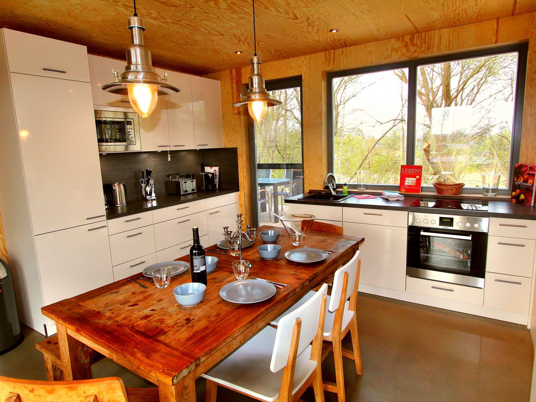 Das Ferienhaus erstreckt sich über zwei Wohnebenen. Insgesamt verfügt es über vier gemütliche Schlafzimmer. Zwei Bäder stehen Ihnen zur Verfügung, um den Komfort für alle Gäste zu gewährleisten. Der großzügige Wohn- und Essbereich mit einer offenen Küche lädt zum Verweilen ein. Hier können Sie gemeinsam Mahlzeiten zubereiten und gemütliche Stunden verbringen. Ein Gas-Kamin sorgt für eine behagliche Atmosphäre und eine angenehme Wärme.