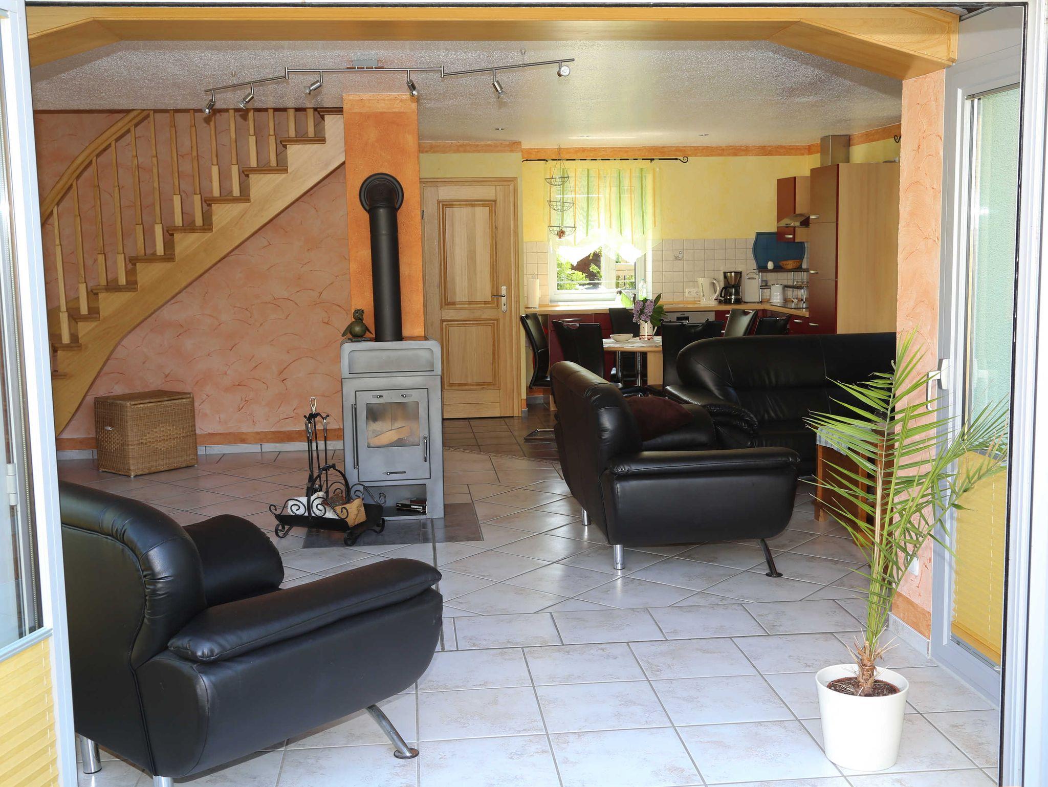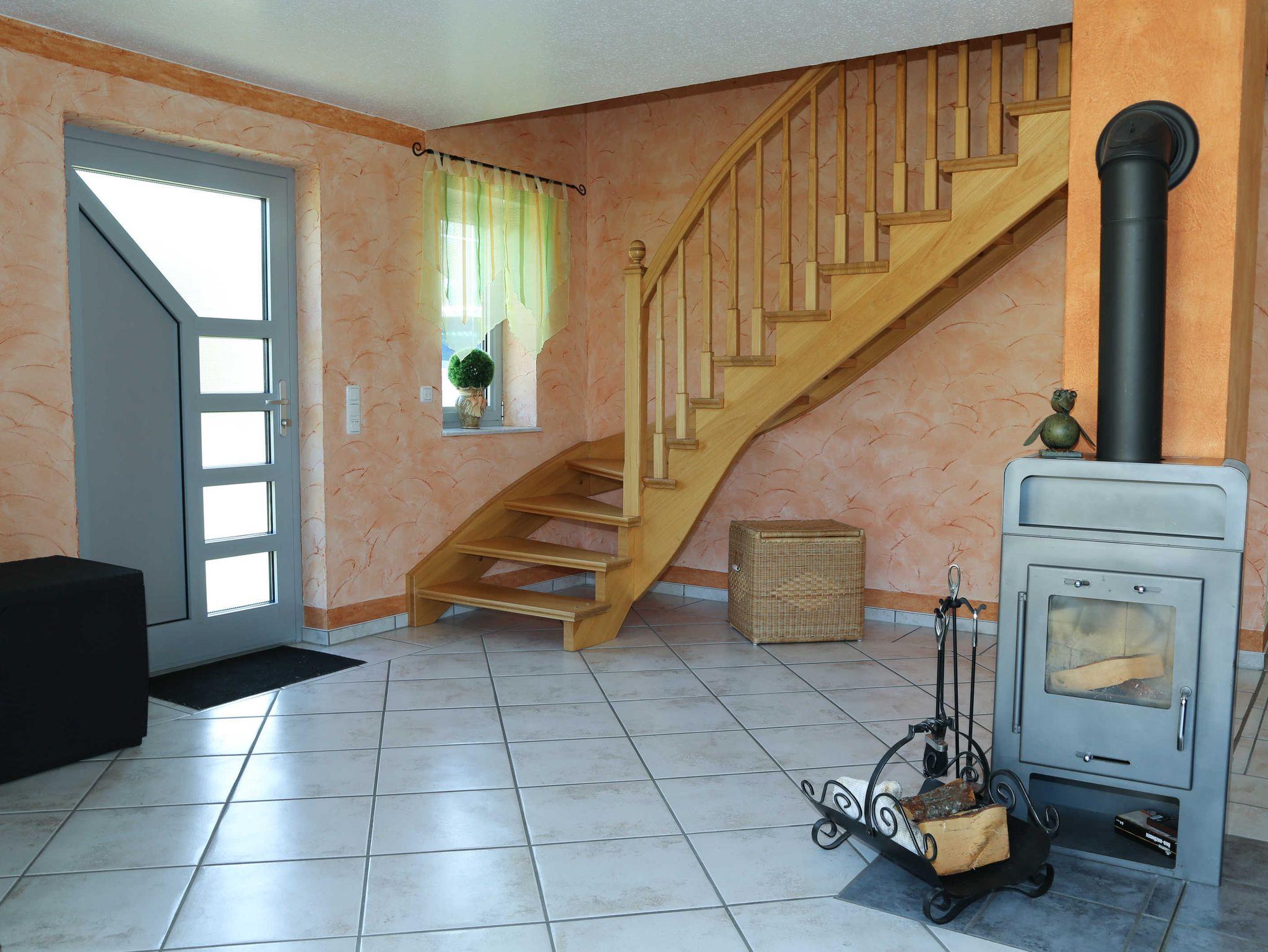 Im OG befinden sich 3 Schlafräume. Davon ein Schlafzimmer mit Doppelbett, die beiden anderen verfügen über eine Schlafcouch (zum Ausziehen). Ebenfalls im OG befindet sich ein Bad mit Wanne/WC. Im EG ist ein großer Wohnraum mit einer offenen, mit allem Komfort ausgestatteten Küche, ein großzügiger Eßplatz und eine ebensolche Sitzgruppe sowie ein Kaminofen. Weiter bfindet sich im EG ein zweites Bad, ausgestattet mit Dusche und WC sowie eine Abstellkammer. Durch den Wintergarten gelangt man auf die schöne, möblierte Terrasse. Das Haus besitzt eine Fußbodenheizung. Die Badezimmer sind zusätzlich noch mit Wandheizkörpern ausgestattet. Auf dem Grundstück ist ein PKW-Stellplatz mit Carport vorhanden.