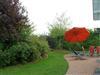 Die Terrasse mit Gartenmöbeln, Ampelsonnenschirm und einem Grill lädt zum Aufenthalt im Freien ein. Sie führt um das Haus herum und bietet Ihnen Sonnenschein von morgens bis abends.