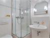 Das Badezimmer ist mit einer Dusche und WC ausgestattet.