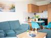 Die hier angrenzende Küchenzeile ist mit einem Kühlschrank mit Gefrierfach, einem Geschirrspüler und einem Backofen mit Kochfeld ausgestattet. Eine Kaffeemaschine, ein Toaster, ein Eierkocher und ein Wasserkocher stehen Ihnen hier selbstverständlich zur Verfügung.