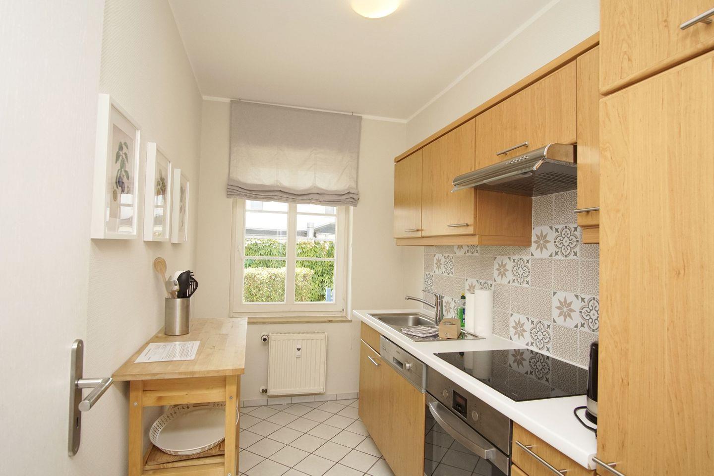 KÜCHE // separate Küche, 4-Platten Herd, Spülmaschine, Kühlschrank mit Gefrierfach, Backofen, Toaster, Wasserkocher, Kaffeemaschine, reichlich Besteck, Geschirr und Küchenutensilien ++