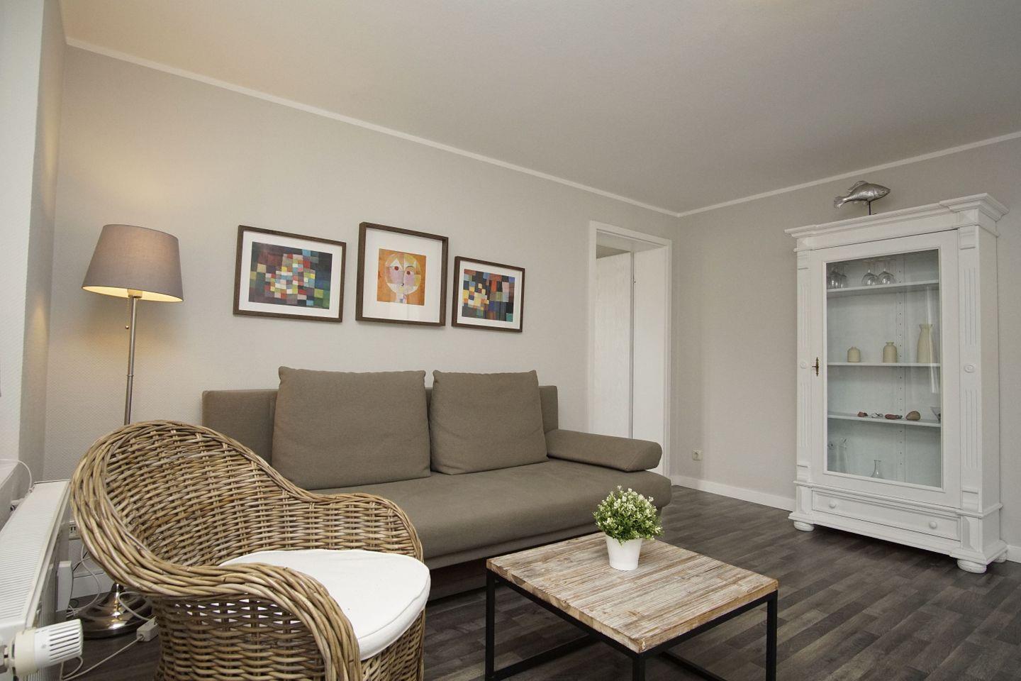 WOHNEN // Wohnraum mit Essbereich, Sitzgarnitur mit bequemer Schlafcouch, Flachbild-TV, CD-Spieler++