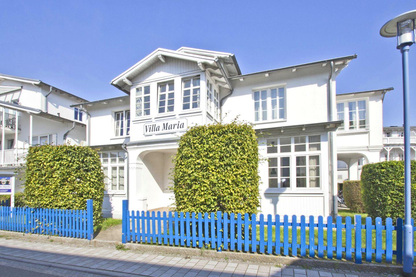 Die Villa Maria ist eines der beliebtesten Häuser Göhrens. Die historische, liebevoll sanierte Bäderstilvilla befindet sich in einer zentralen aber dennoch ruhigen Lage in der Ortsmitte vom Ostseebad Göhren. Das Haus verfügt über vier moderne Ferienwohnungen, die mit viel Liebe zum Detail eingerichtet sind. Durch die verglasten Loggien sind die gemütlichen und hellen Ferienwohnungen zu jeder Jahreszeit lichtdurchflutet und bieten viel Platz für Ihren wohlverdienten Urlaub. Genau die richtige Unterkunft für Familien.