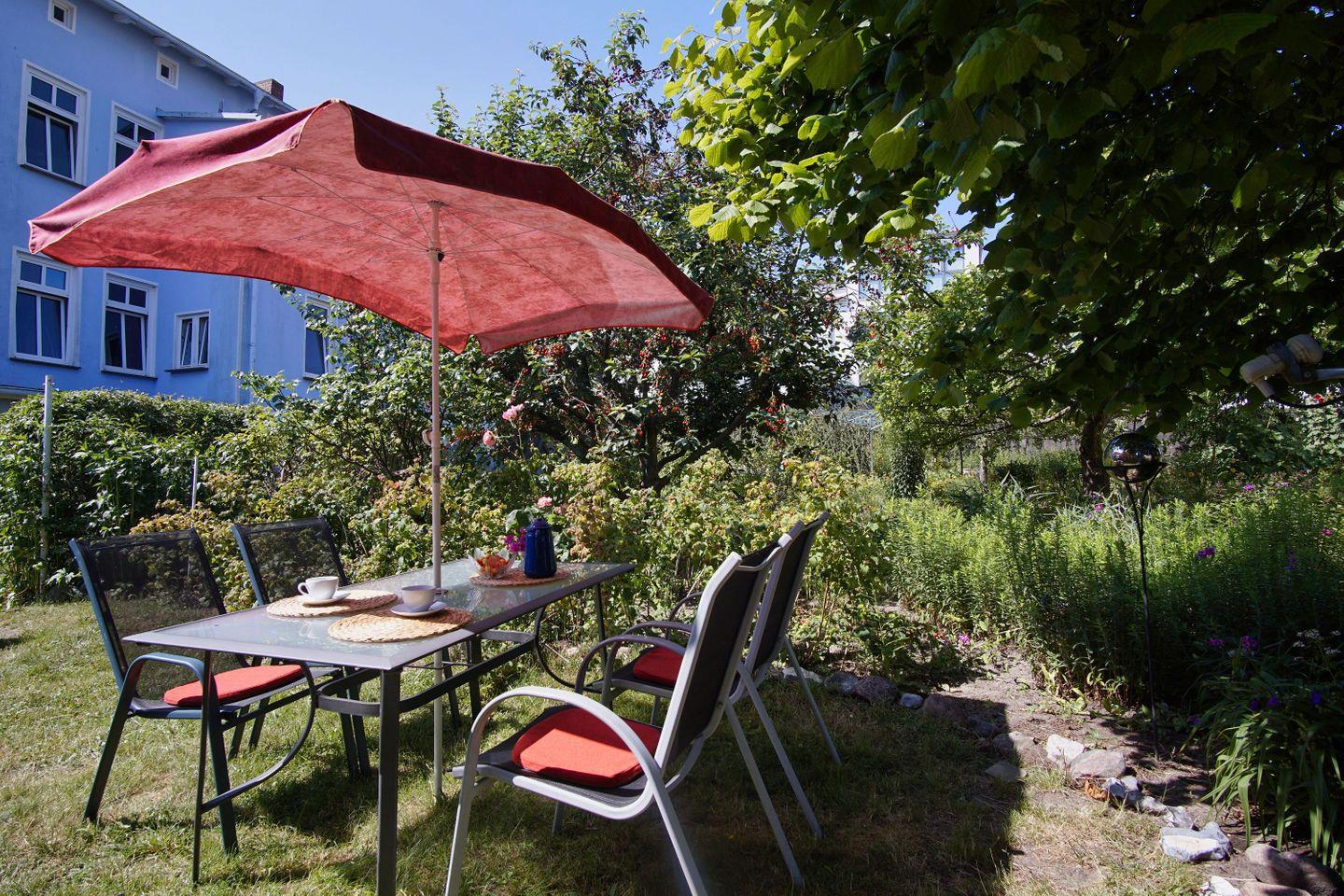 zentral aber ruhig, Terrasse mit viel Grün - strandnahes Ferienhaus Luki