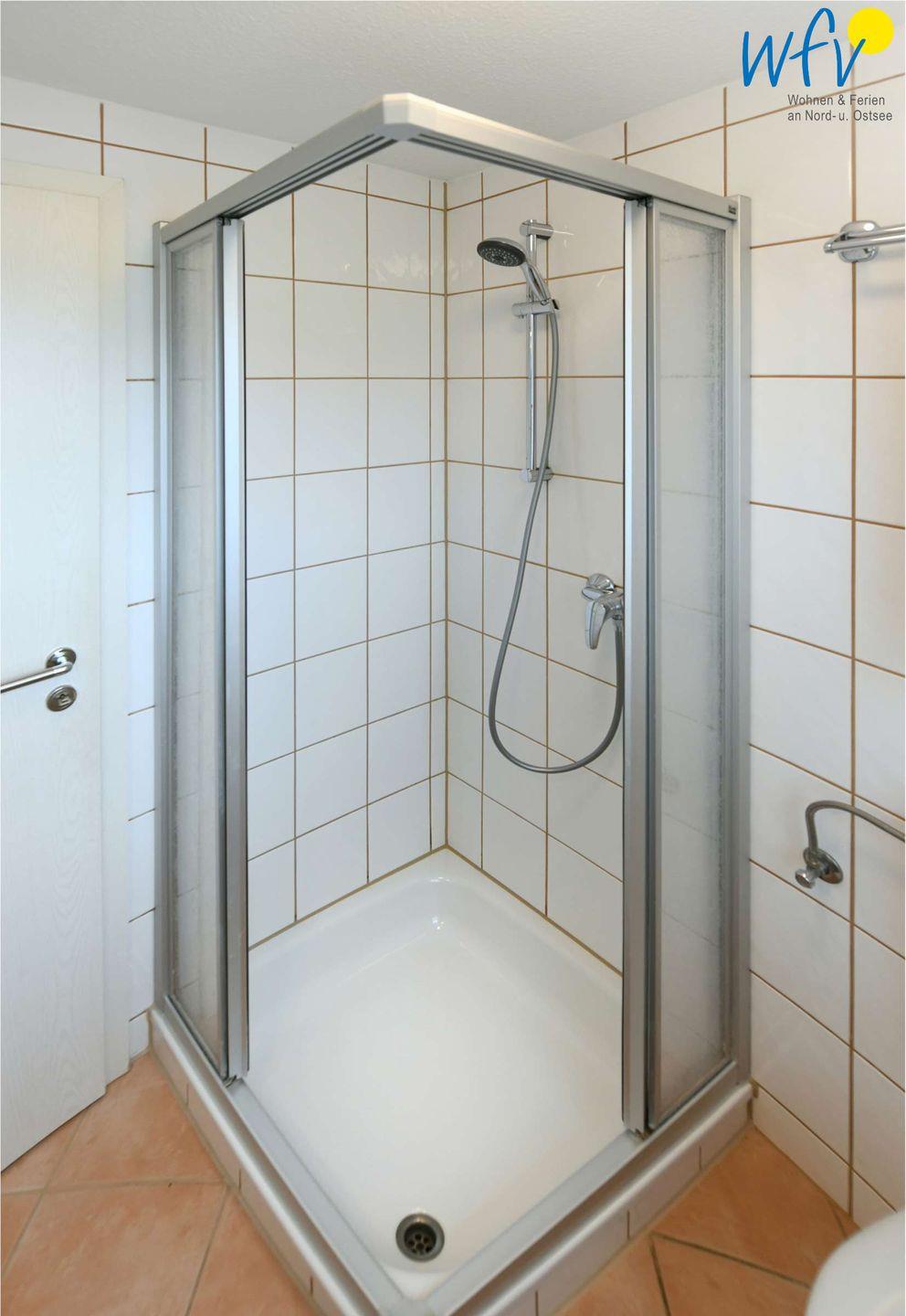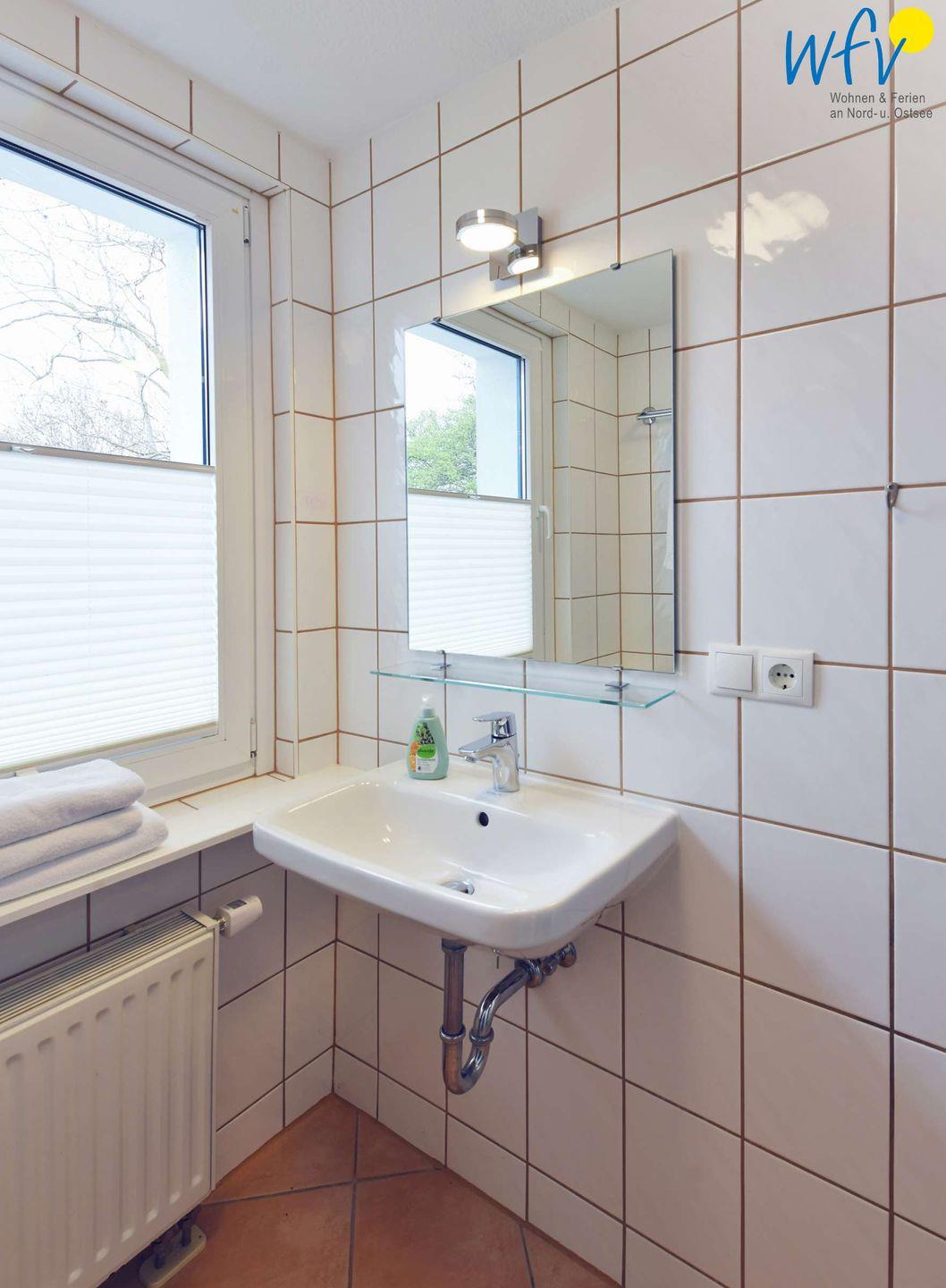 Das gepflegte Tageslichtbad mit Dusche, Waschbecken und WC rundet den Wohnkomfort ab.