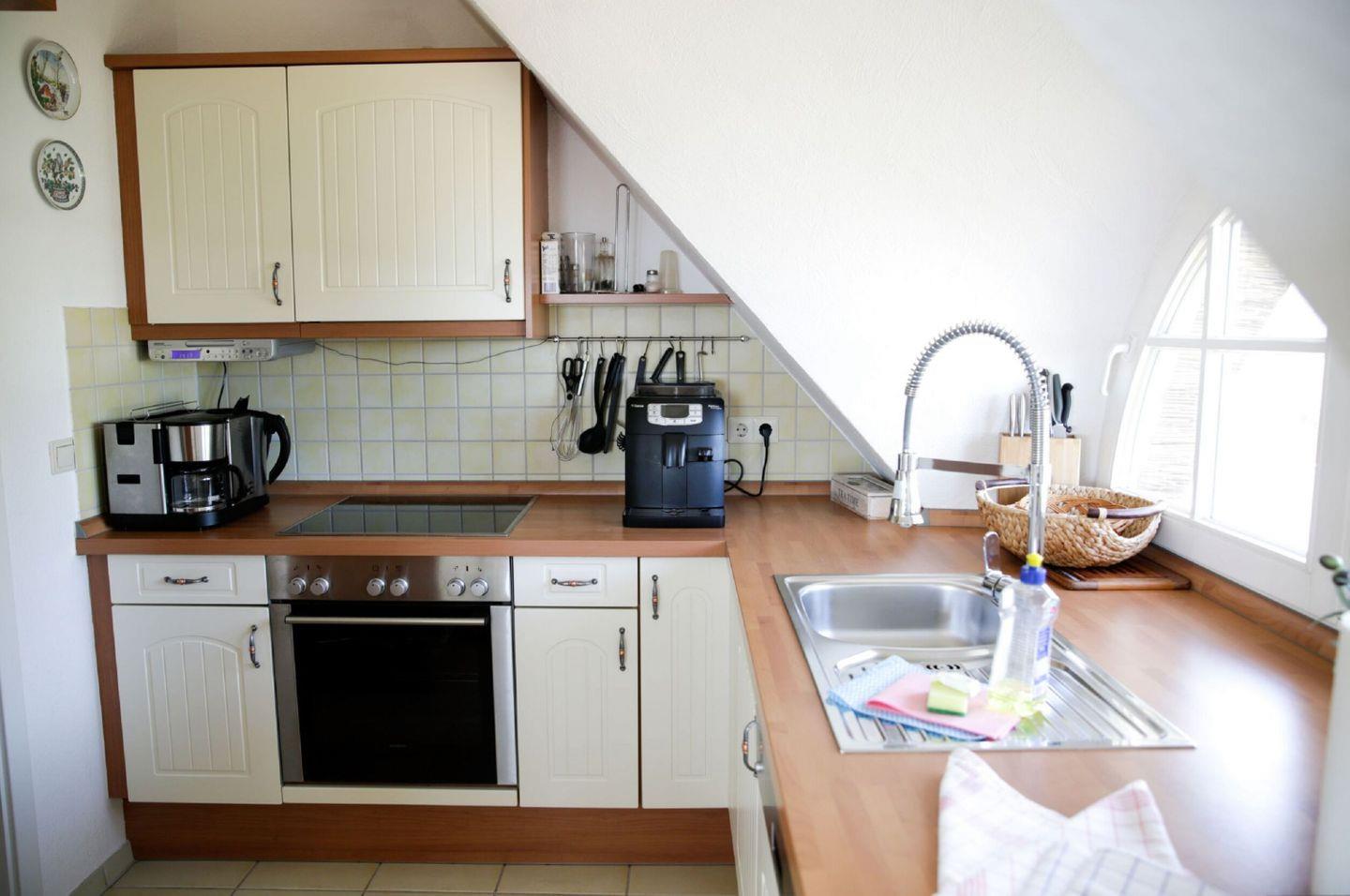 KÜCHE // offen zum Wohnraum Küchenzeile, Ceranfeld, Spülmaschine, Kühlschrank mit Gefrierfach, Backofen, Toaster, Wasserkocher, Kaffeevollautomat, reichlich Besteck, Geschirr und Küchenutensilien ++