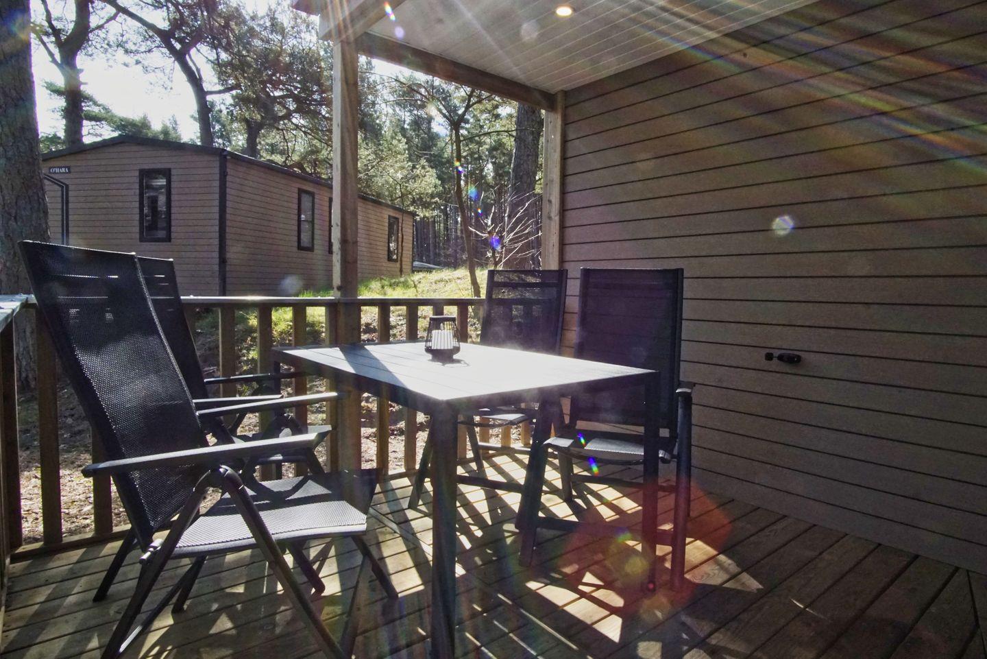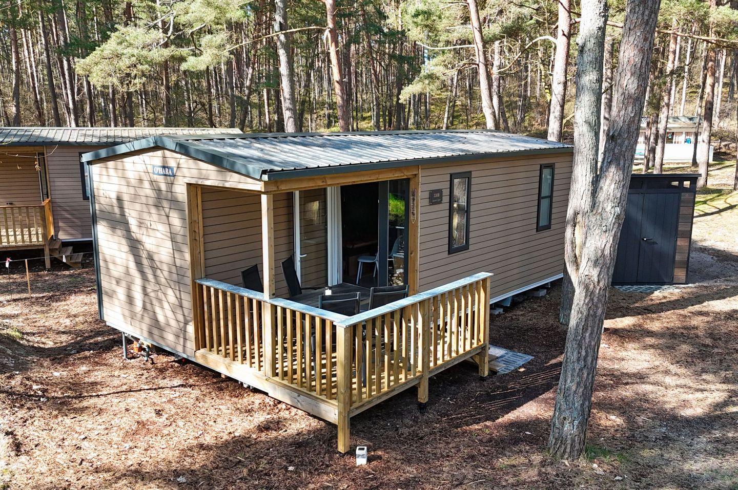 ALLGEMEINE ECKDATEN // 3-Raum Ferienhäuschen Chalet Auszeit und Meer 330 B für bis zu 4 Personen, 33 m², Terrasse teilweise überdacht ++
