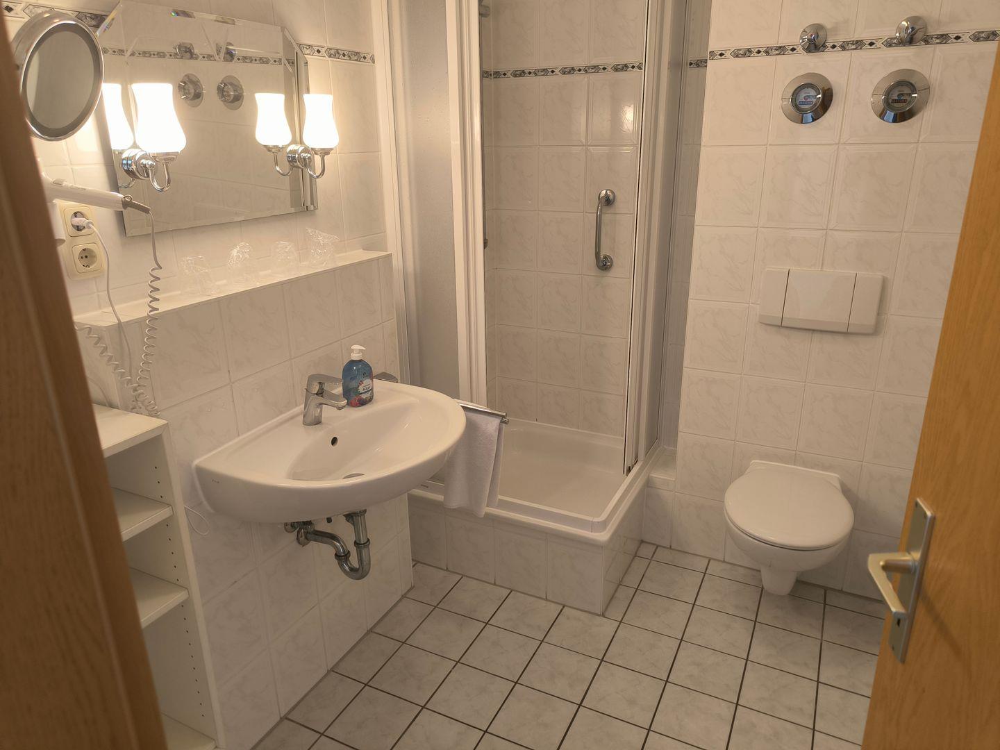 Ein helles Schlafzimmer mit einem komfortablen Bett sorgt für erholsame Nächte. Das Badezimmer ist mit einem modernen Duschbereich, Waschbecken und WC ausgestattet, sodass Sie sich in privatem Ambiente erfrischen können. Darüber hinaus steht Ihnen eine Garderobe zur Verfügung, die zusätzlichen Stauraum für Ihre persönlichen Dinge bietet. Die gesamte Wohnung ist eine Nichtraucherunterkunft und Haustiere sind herzlich willkommen.