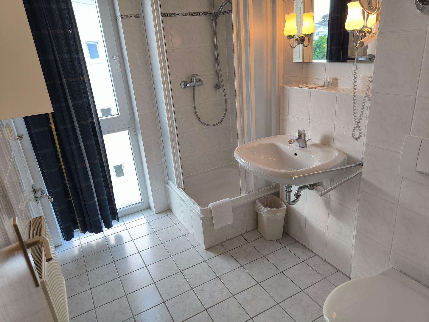 Bad mit Dusche, WC und Föhn