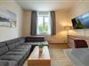 Wohnbereich mit moderner Wohnlandschaft, Couchtisch, TV (integr. Radio) und Esstisch mit 4 Stühlen