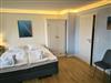 Schlafzimmer mit einem Boxspringbett (180 x 200 cm) und großem Kleiderschrank, durch einen Vorhang vom Wohnraum getrennt