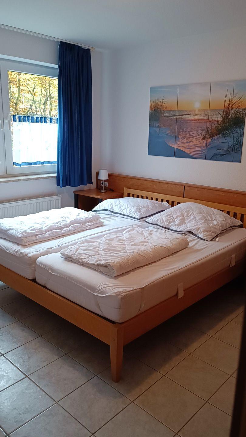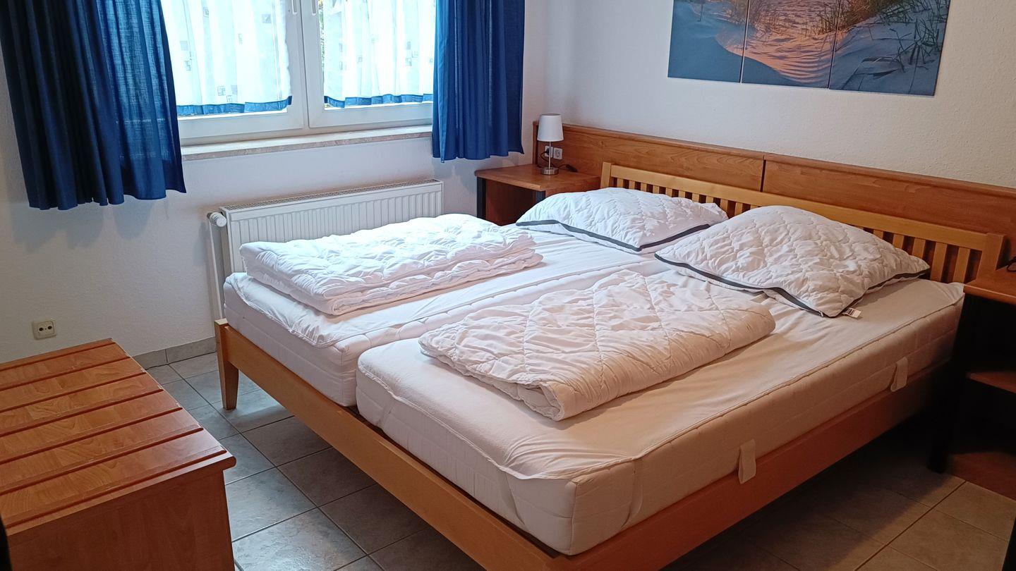 2. Schlafzimmer mit 2 getrennt stehenden Betten und 2 kleinen Kleiderschränken