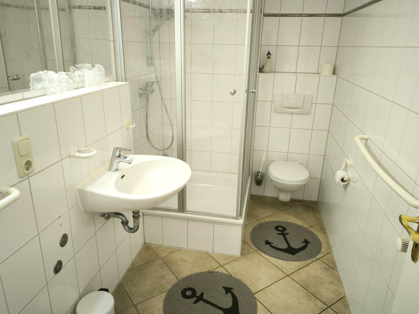 Bad mit Dusche, WC und Föhn