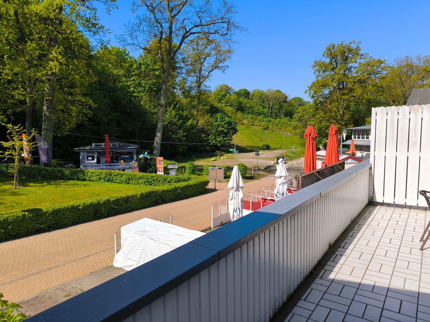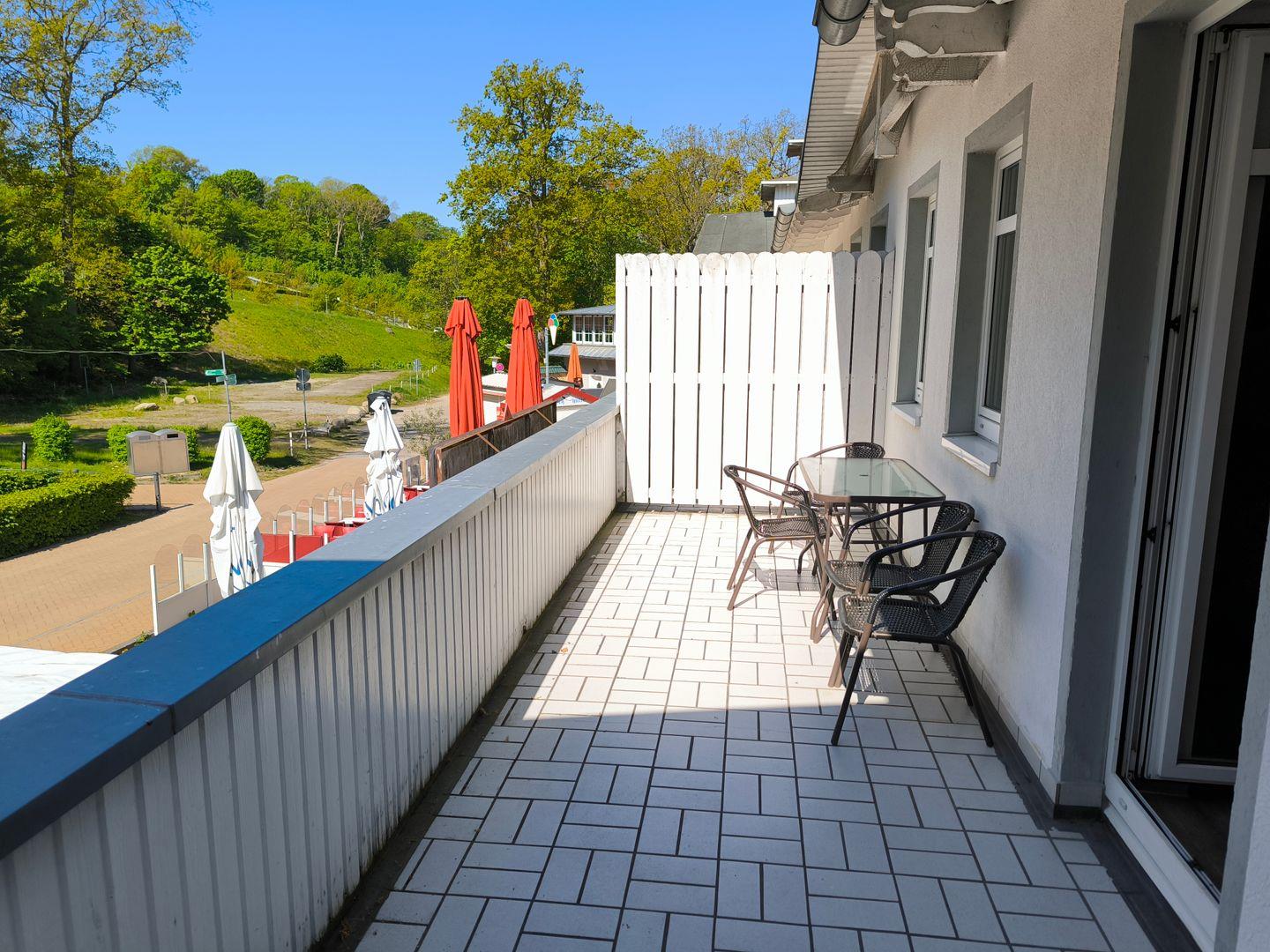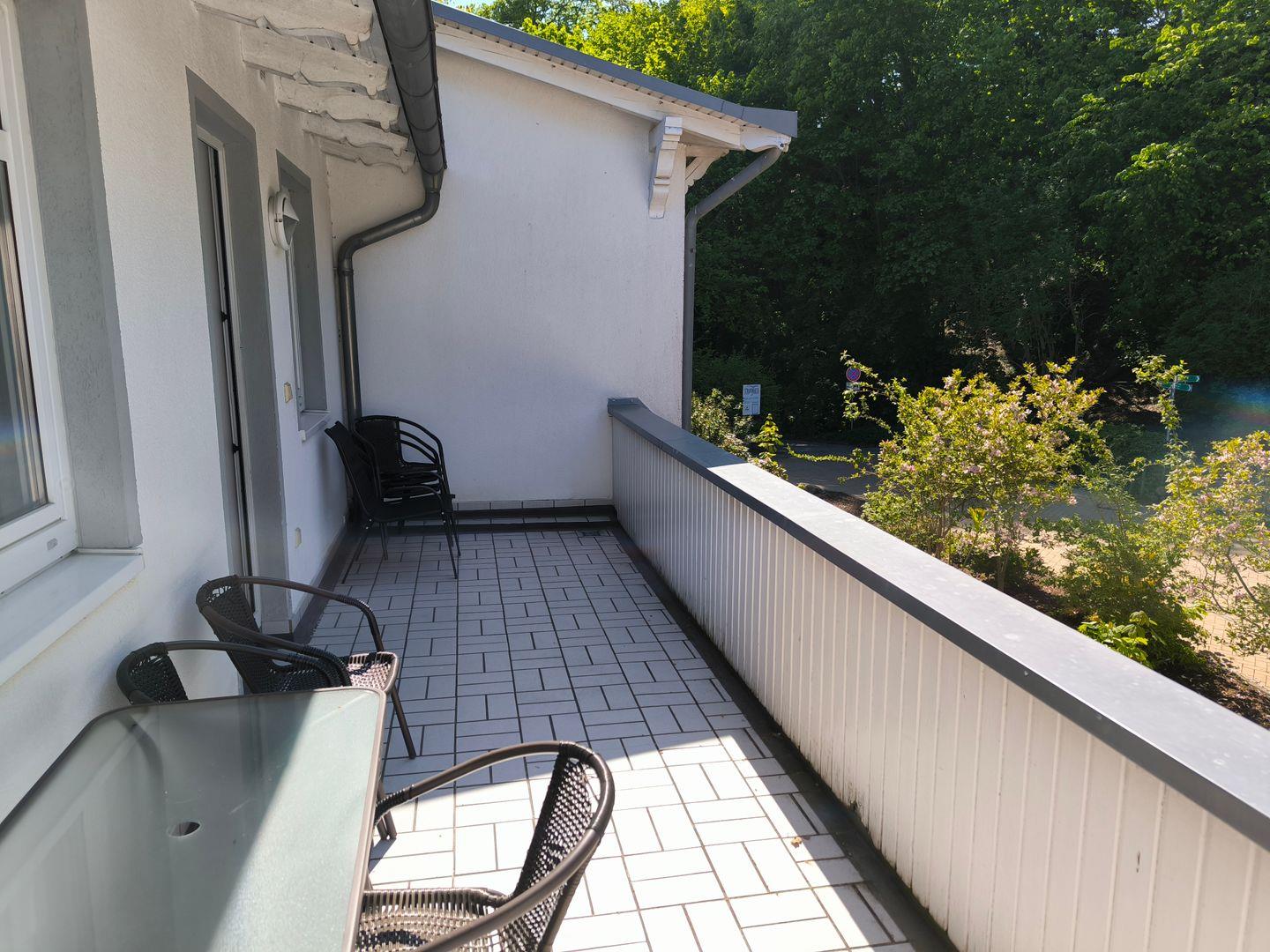 Die Ferienwohnung ist freundlich und hell eingerichtet und hat einen Balkon.
