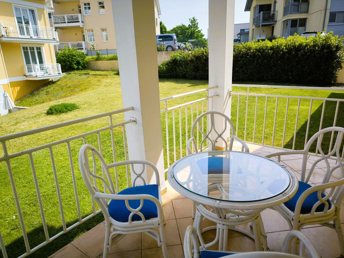 verglaste Veranda mit Esstisch und 4 Stühlen