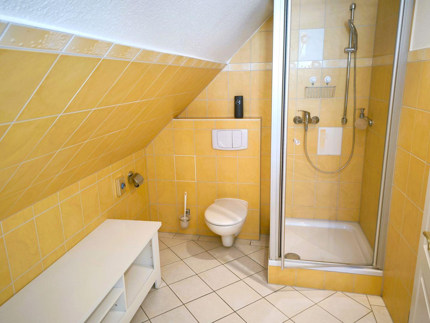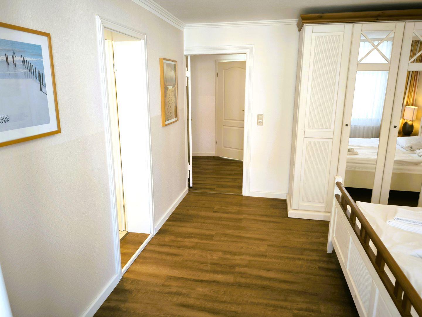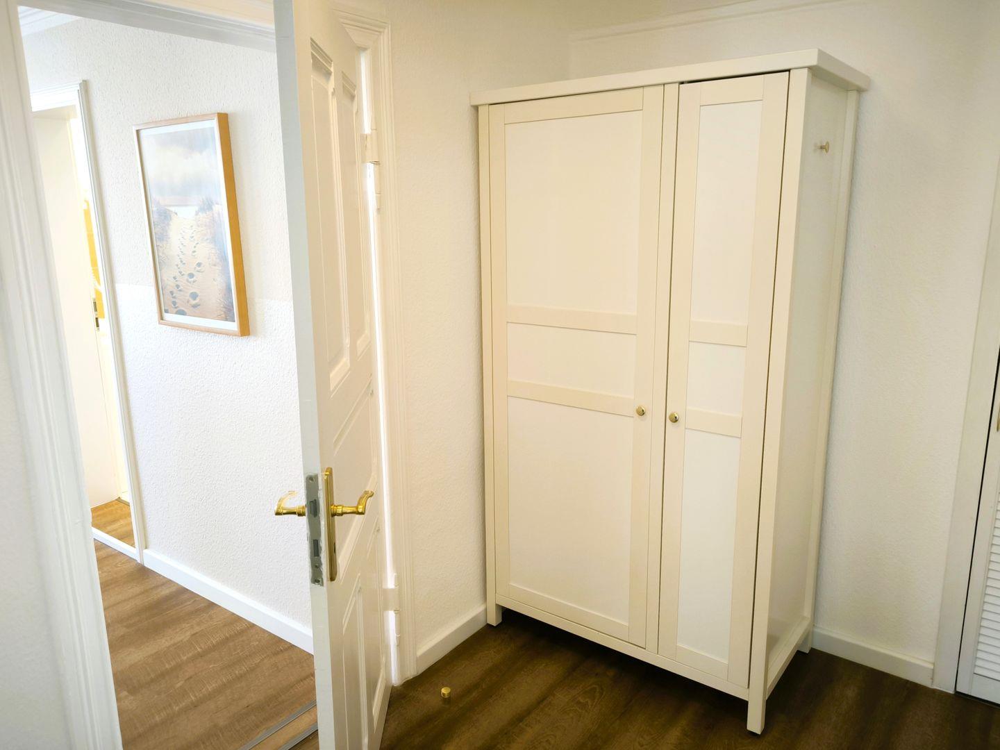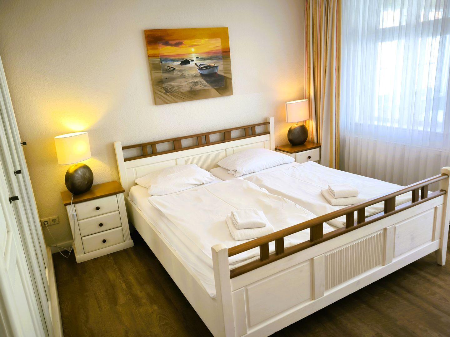 Schlafzimmer mit einem Doppelbett (180 x 200 cm), großem Kleiderschrank
