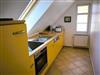 separate Küche mit 4- Platten- Kochfeld, Backofen, Kühlschrank, Toaster, Kaffeemaschine, Wasserkocher und Küchenutensilien